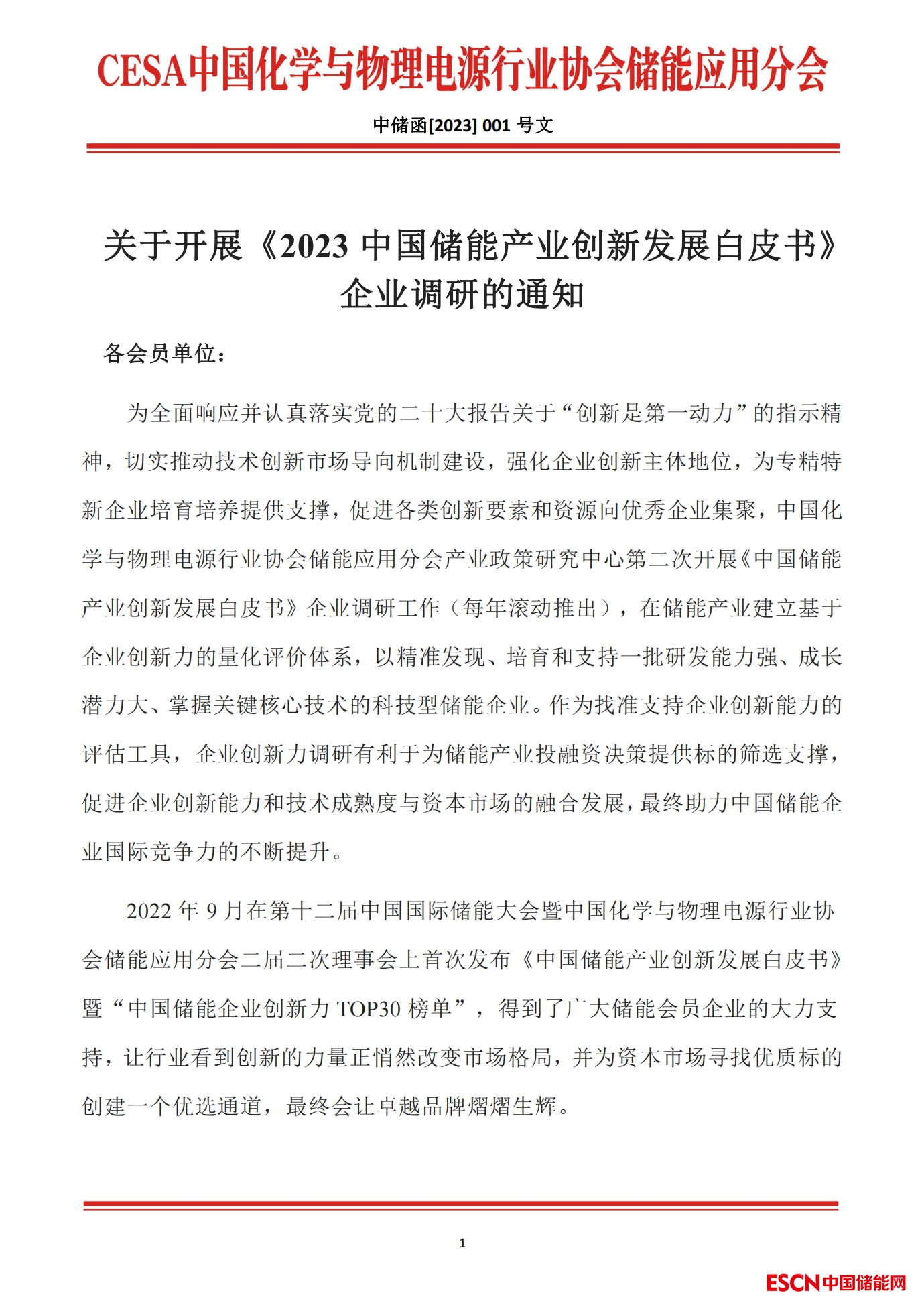 為全面響應(yīng)并認真落實黨的二十大報告關(guān)于“創(chuàng)新是第一動力”的指示精神,切實推動技術(shù)創(chuàng)新市場導(dǎo)向機制建設(shè),強化企業(yè)創(chuàng)新主體地位,為專精特新企業(yè)培育培養(yǎng)提供支撐,促進各類創(chuàng)新要素和資源向優(yōu)秀企業(yè)集聚,中國化學(xué)與物理電源行業(yè)協(xié)會儲能應(yīng)用分會產(chǎn)業(yè)政策研究中心第二次開展《中國儲能產(chǎn)業(yè)創(chuàng)新發(fā)展白皮書》企業(yè)調(diào)研工作(每年滾動推出),在儲能產(chǎn)業(yè)建立基于企業(yè)創(chuàng)新力的量化評價體系,以精準發(fā)現(xiàn)、培育和支持一批研發(fā)能力強、成長潛力大、掌握關(guān)鍵核心技術(shù)的科技型儲能企業(yè)。作為找準支持企業(yè)創(chuàng)新能力的評估工具,企業(yè)創(chuàng)新力調(diào)研有利于為儲能產(chǎn)業(yè)投融資決策提供標的篩選支撐,促進企業(yè)創(chuàng)新能力和技術(shù)成熟度與資本市場的融合發(fā)展,最終助力中國儲能企業(yè)國際競爭力的不斷提升。