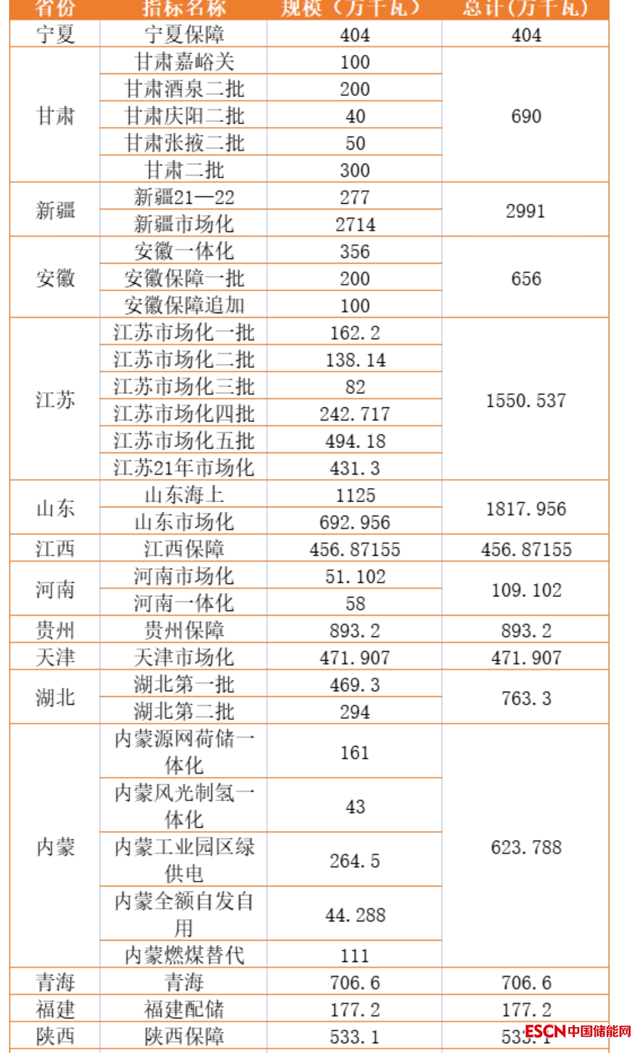 總體來看,2022年共有18個省市完成指標分配,包含保障性、市場化、一體化、源網(wǎng)荷儲等類型,指標規(guī)模較多的省份為新疆、江蘇、山東等,規(guī)模均超10GW,指標分配規(guī)模最多的新疆,總量將近30GW。