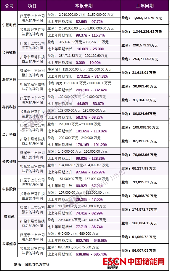 中國儲能網(wǎng)訊:日前電池和儲能產(chǎn)業(yè)鏈相關企業(yè)相繼發(fā)布2022年業(yè)績預告,包括電池企業(yè)寧德時代、億緯鋰能,戶用儲能企業(yè)派能科技,正極材料企業(yè)容百科技、當升科技、長遠鋰科,前驅(qū)體企業(yè)中偉股份,負極隔膜綜合供應商璞泰來,鋰鹽企業(yè)天華超凈等。