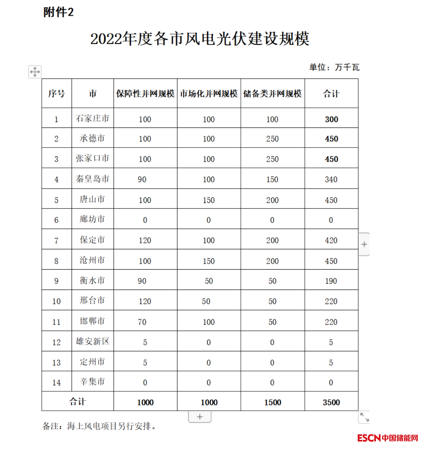 11月4日,河北發(fā)改委發(fā)布《關(guān)于做好2022年風電、光伏發(fā)電項目申報工作的通知》指出,全省安排保障性并網(wǎng)規(guī)模1000萬千瓦;市場化并網(wǎng)規(guī)模1000萬千瓦;儲備類并網(wǎng)項目規(guī)模1500萬千瓦。其中,唐山市陸上風光建設(shè)規(guī)模為4.5GW。海上風電項目另行安排。