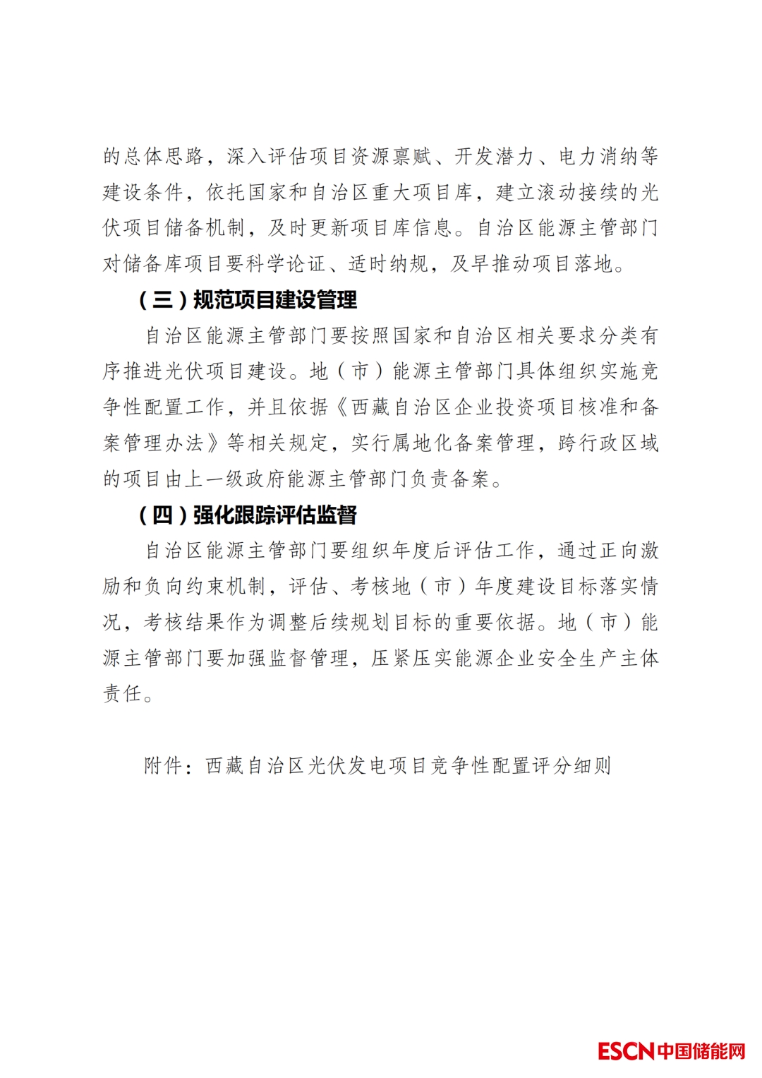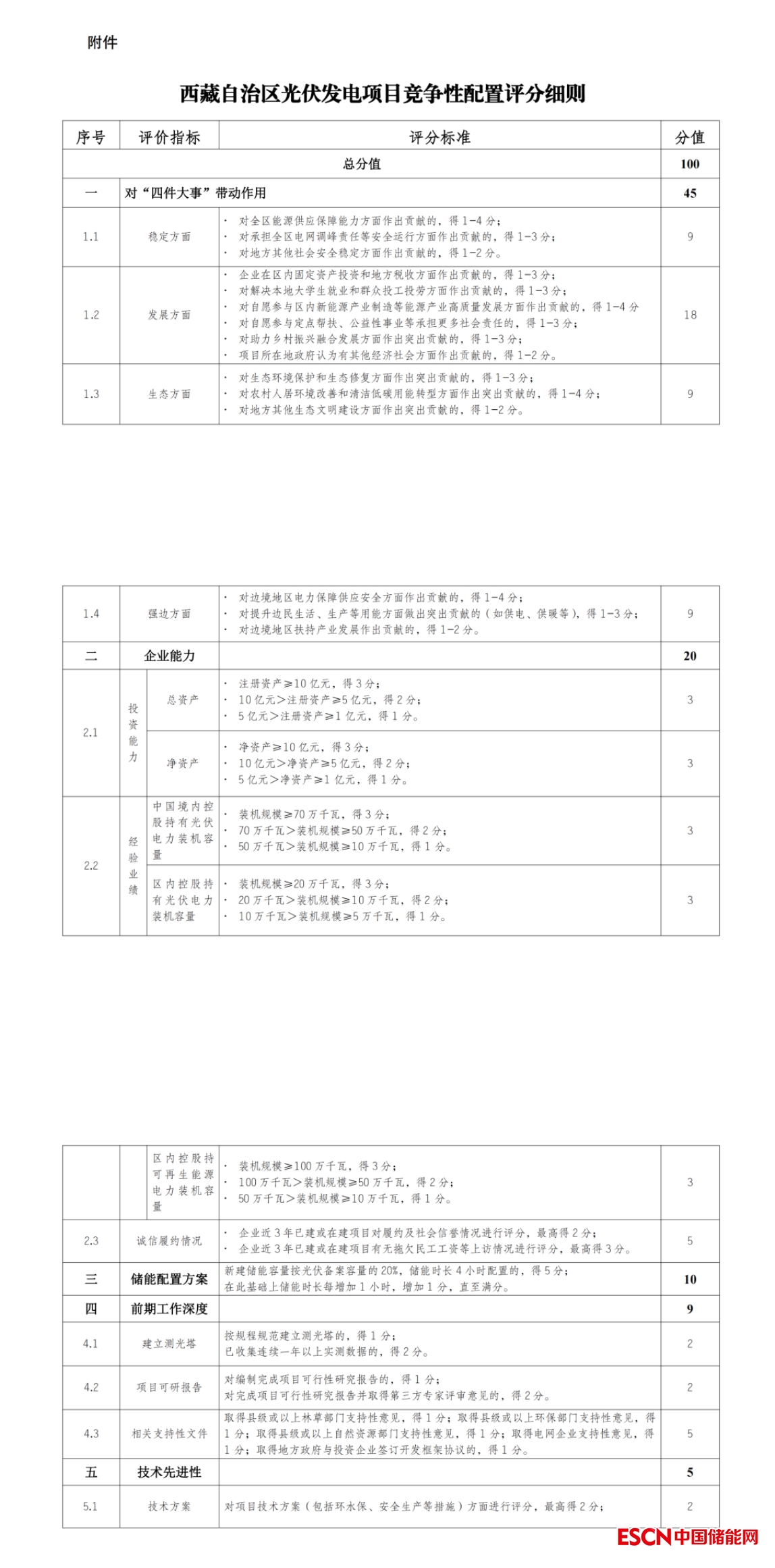 在意見附件《西藏自治區(qū)光伏發(fā)電項目競爭性配置評分細則》中,“儲能配置方案”單獨列出并獲得了10分權限,并進一步明確要求: