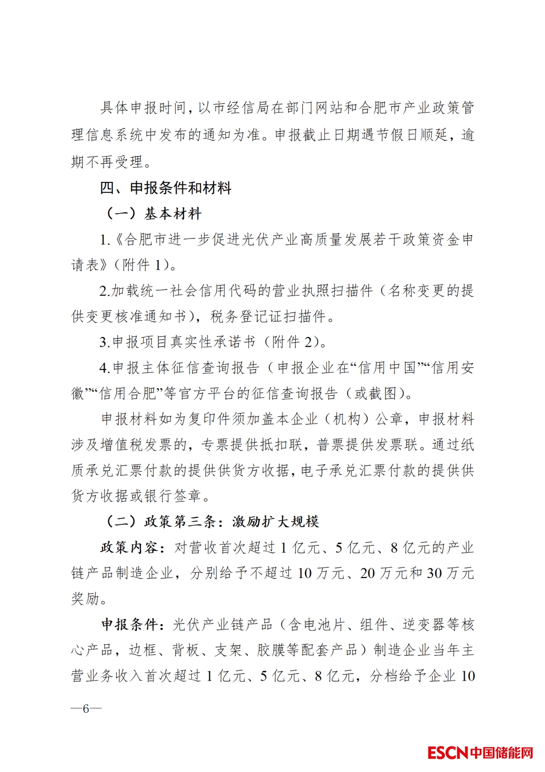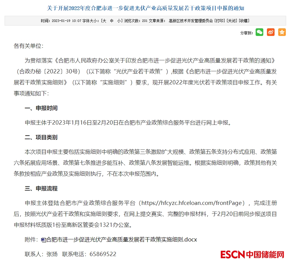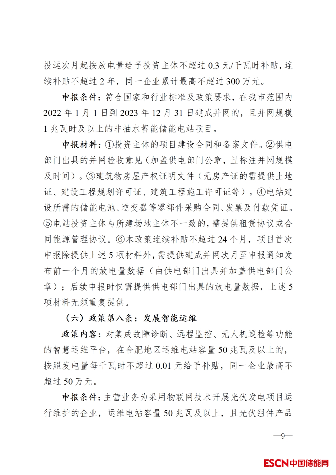 申報主體于2023年1月16日至2月20日在合肥市產(chǎn)業(yè)政策綜合服務平臺進行網(wǎng)上申報。申報內(nèi)容包括激勵擴大規(guī)模、支持分布式應用、拓展應用場景、推進多能互補、發(fā)展智能運維相關。其他有關條款不在本次申報范圍內(nèi)。