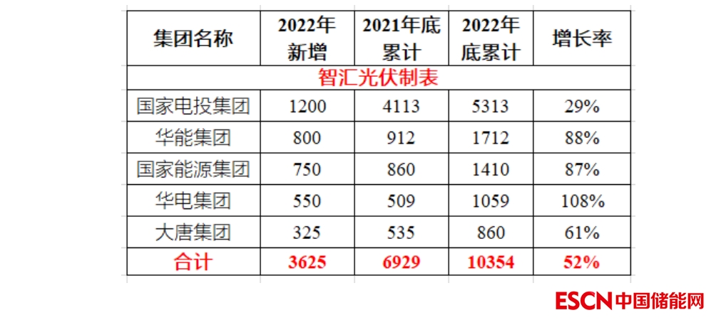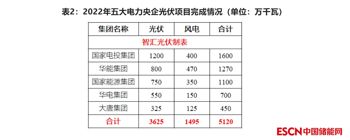 2022年,五大電力央企新能源新增規(guī)模為51.2GW,約占全國新能源新增總量的4成。其中:新增光伏項目36.25GW,新增風(fēng)電14.95GW。