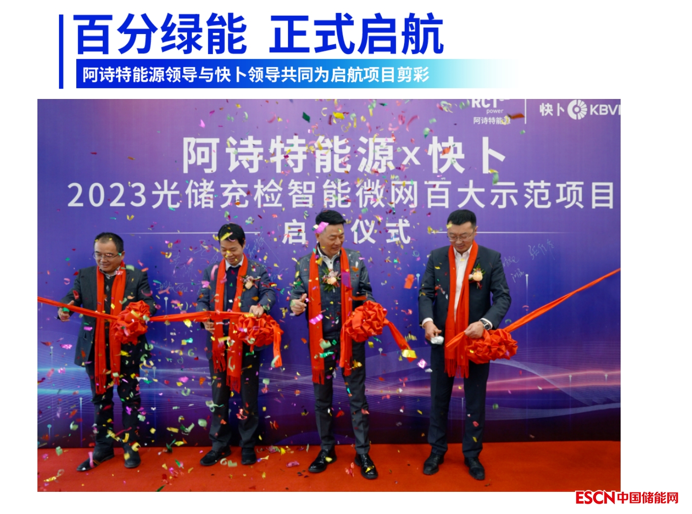 阿詩特能源董事長(zhǎng)鄭文涌、總經(jīng)理石發(fā)成和快卜創(chuàng)始人孔艦、副總經(jīng)理費(fèi)謙共同為阿詩特能源×快卜光儲(chǔ)充檢智能微網(wǎng)項(xiàng)目剪彩,該項(xiàng)目將會(huì)是雙方2023年合力打造的全國百個(gè)“光儲(chǔ)充檢站示范項(xiàng)目”之首,同時(shí)也將會(huì)是“光儲(chǔ)充檢智能微網(wǎng)”解決方案在零碳園區(qū)應(yīng)用上的創(chuàng)新典范。