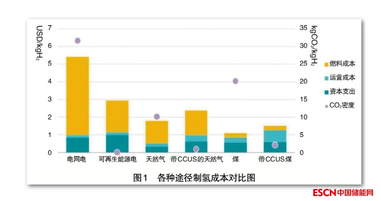 電解水所產(chǎn)氫氣為“綠氫”,被認(rèn)為是氫氣生產(chǎn)的最終方向。目前,綠氫成本遠(yuǎn)遠(yuǎn)高于其他傳統(tǒng)制氫方式,我國(guó)不同制氫途徑的成本對(duì)比如圖1所示。