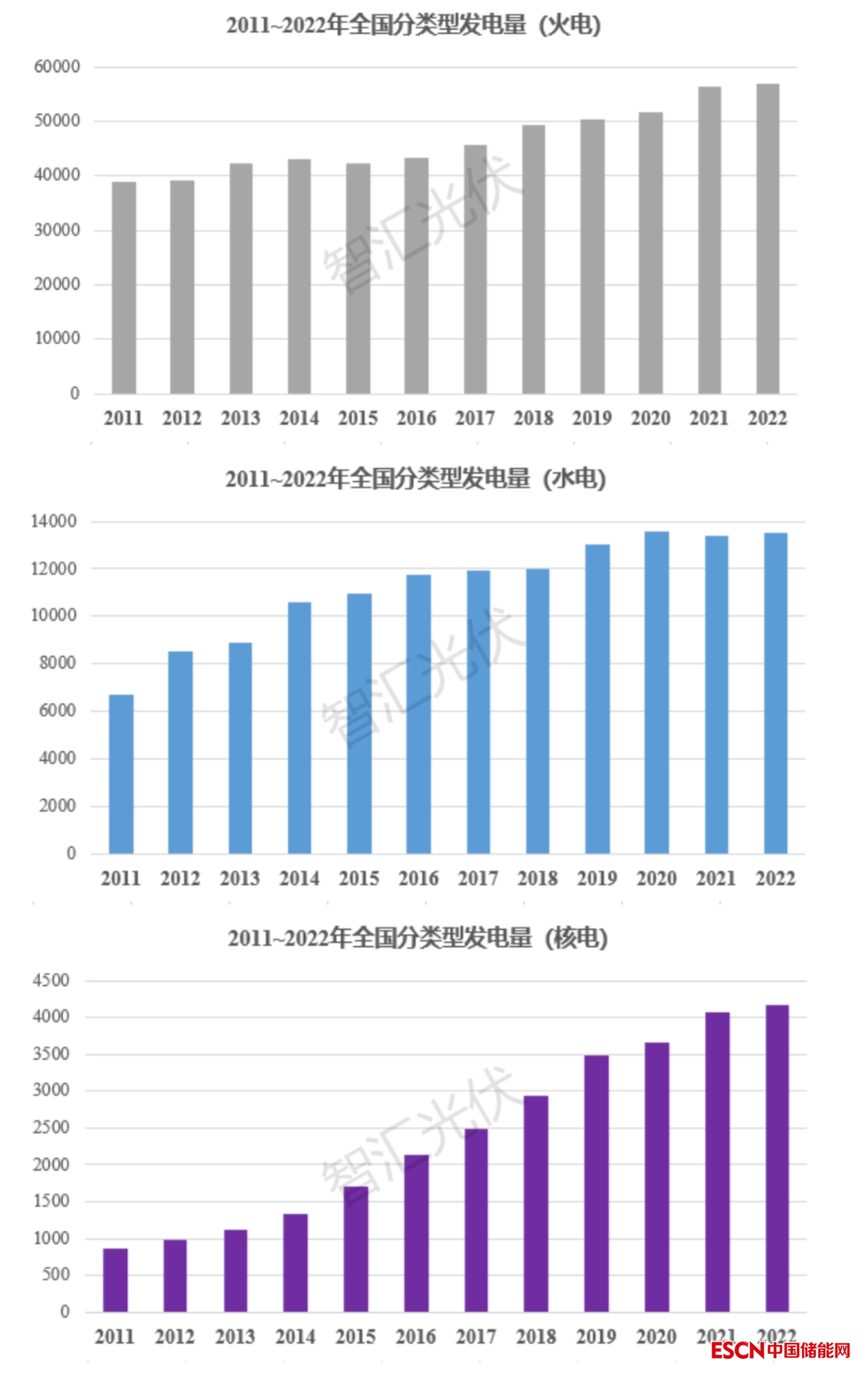 中國(guó)儲(chǔ)能網(wǎng)訊:本文介紹了最近十二年(2011~2022年)國(guó)內(nèi)歷年的,各類電源的新增裝機(jī)、發(fā)電量情況。