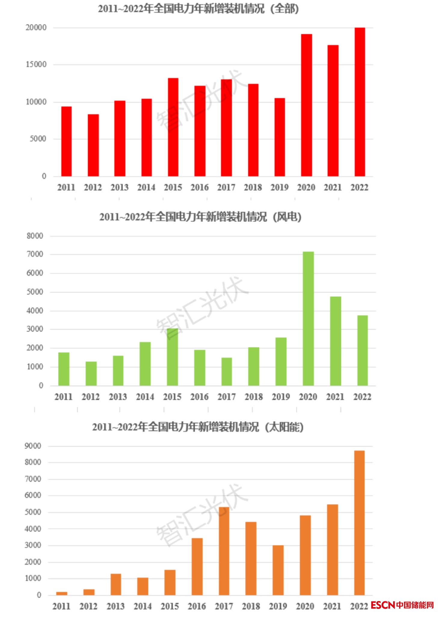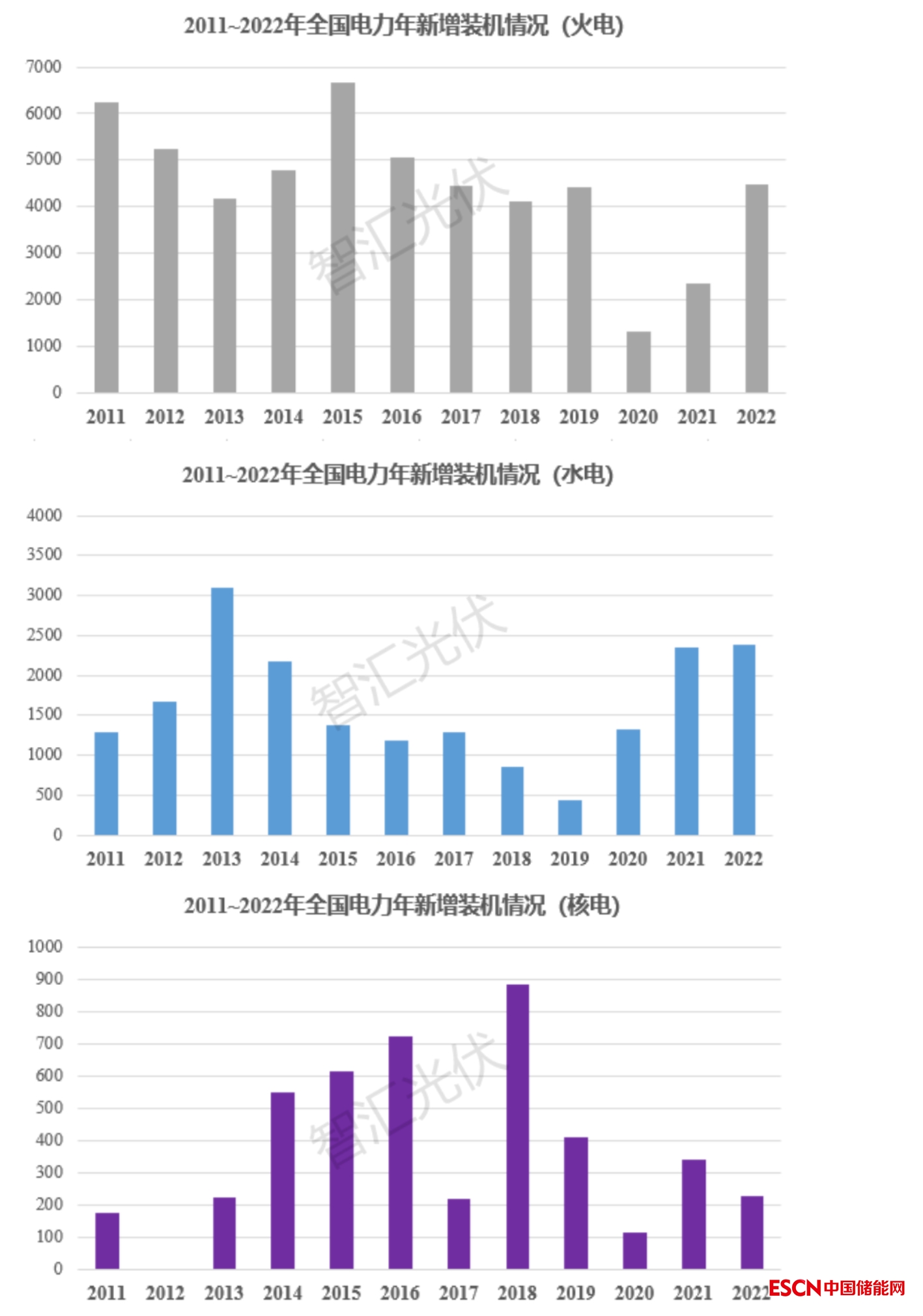 一、2011~2022年各類電源新增裝機(jī)情況