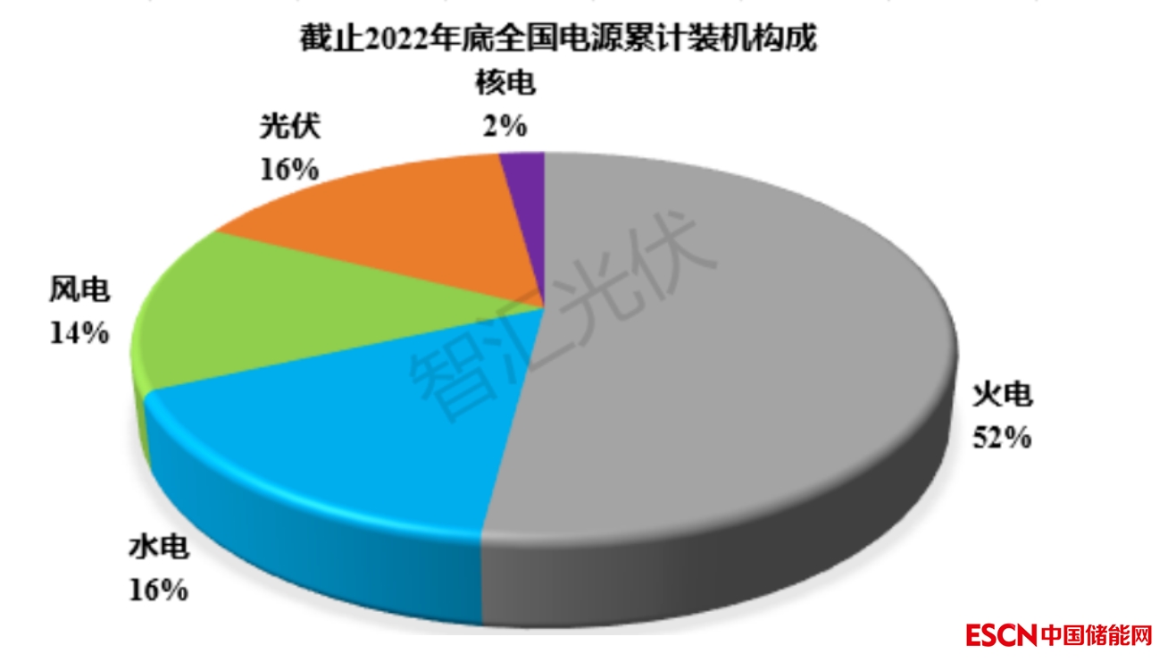 截止2022年底,全國(guó)水電、火電、核電、風(fēng)電、光伏的裝機(jī)容量分別新增4.135億千瓦、13.324億千瓦、5553萬千瓦、3.654億千瓦和3.926億千瓦,合計(jì)25.64億千瓦。