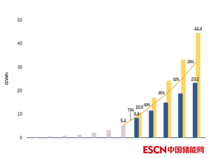 英國正在按照其市場(chǎng)環(huán)境自力更生。2022年將是一個(gè)改變其游戲規(guī)則的年份,英國部署的住宅電儲(chǔ)能系統(tǒng)儲(chǔ)能容量約為300MWh,與2021年相比增長(zhǎng)了一倍多。然而,由于缺乏配套方案和智能電表推出緩慢,預(yù)計(jì)未來幾年將穩(wěn)定在當(dāng)前水平,2023年可能會(huì)有小幅下降,屆時(shí)俄烏沖突對(duì)電價(jià)上漲的影響將有所緩和。