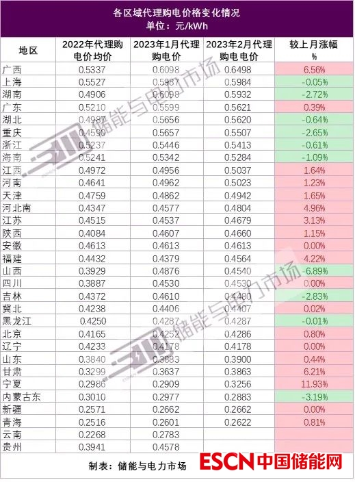 中國儲能網(wǎng)訊:2023年2月各地電網(wǎng)代理購電價(jià)格,除云南、貴州外,已然出爐。以35千伏工商業(yè)兩部制電價(jià)作為分析對象,儲能與電力市場發(fā)現(xiàn):