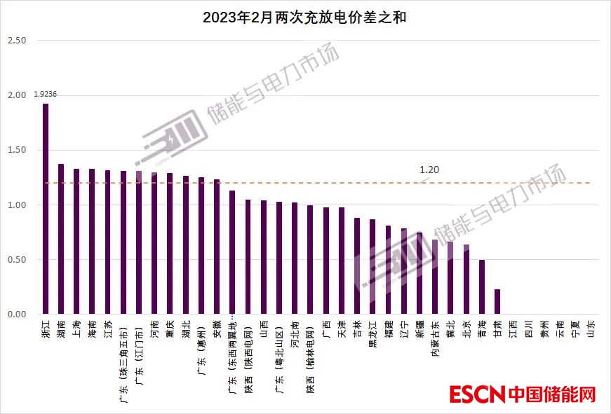 12個(gè)區(qū)域兩次充放電電價(jià)差之和超過1.2元/kWh:浙江、湖南、上海、海南、江蘇、廣東(珠三角五市)、廣東(江門市)、河南、重慶、湖北、廣東(惠州)、安徽 。