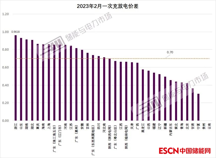 部分地區(qū)在冬季實(shí)施的尖峰電價(jià),隨著用電緊張程度的減輕,2月份不再實(shí)施,因此峰谷價(jià)差超過0.7元/kWh的地區(qū)數(shù)量下降為17個(gè),較1月份25個(gè),減少32%;