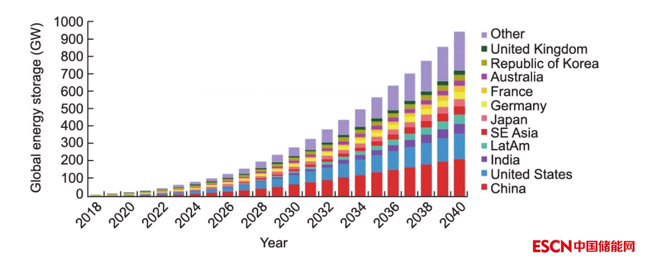 國際能源協(xié)會(International Energy Association)預(yù)測,雖然抽水蓄能項目成本高昂,還依賴特定地理條件,但在儲能需求的驅(qū)動下,抽水蓄能項目在未來10年內(nèi)將實現(xiàn)創(chuàng)紀(jì)錄增長。針對預(yù)計儲能需求,工業(yè)也在大力發(fā)展化學(xué)儲能。而其中,鋰離子電池將在發(fā)展中扮演重要角色,比如特斯拉公司的Megapack儲能項目將達到公用事業(yè)規(guī)模。彭博新能源財經(jīng)(Bloomberg New Energy Finance)預(yù)測全球儲能(排除抽水蓄能)容量在2030年將達到1 TW·h,是2020年可用容量的20多倍(圖4)。該目標(biāo)大部分將由鋰離子電池完成,不過新型公用事業(yè)規(guī)模的“液體電池”也在開發(fā)中。但Gravitricity公司首席工程師Miles Franklin認(rèn)為鋰離子電池儲能方案仍存在缺陷?!颁囯x子電池很適合手機和電動車,但是不適合靜態(tài)、與電網(wǎng)互聯(lián)且不要求高能量密度的設(shè)施?!?