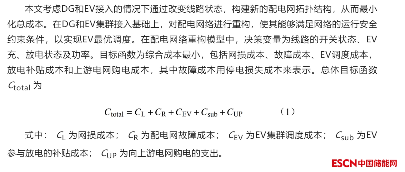 考慮分布式電源和電動汽車集群調(diào)度的配電網(wǎng)絡(luò)重構(gòu)