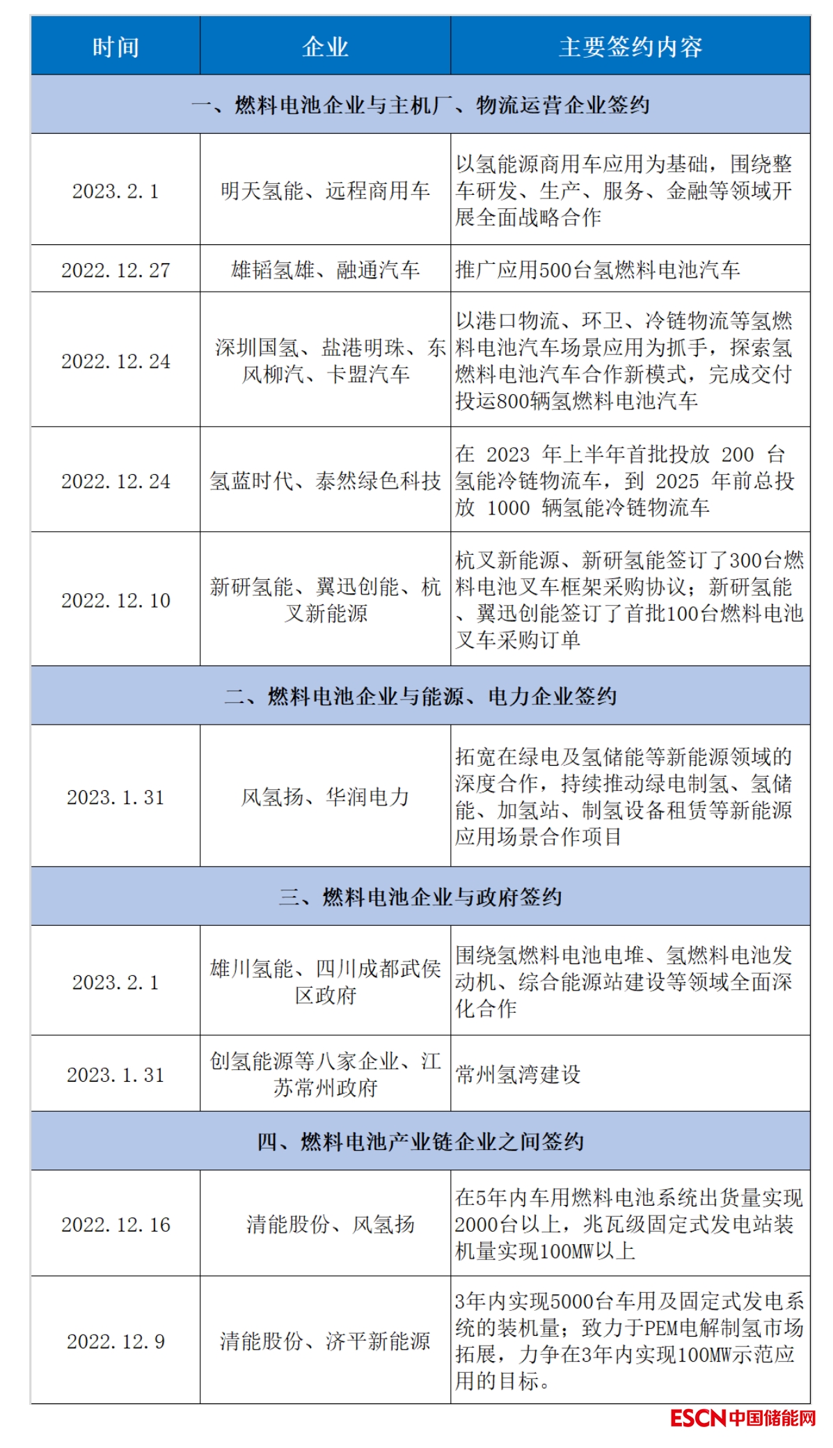 從簽約內容來看,氫車推廣、固定式發(fā)電、電解水制氫等成為燃料電池企業(yè)及其合作伙伴下一步的發(fā)力重點,預計將在2023年迎來新一輪發(fā)展高潮。