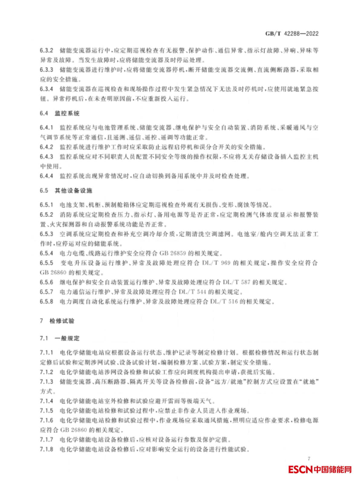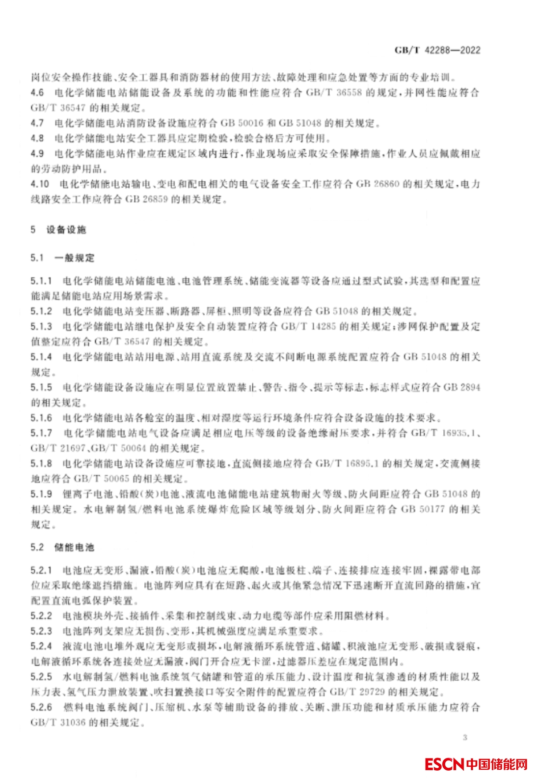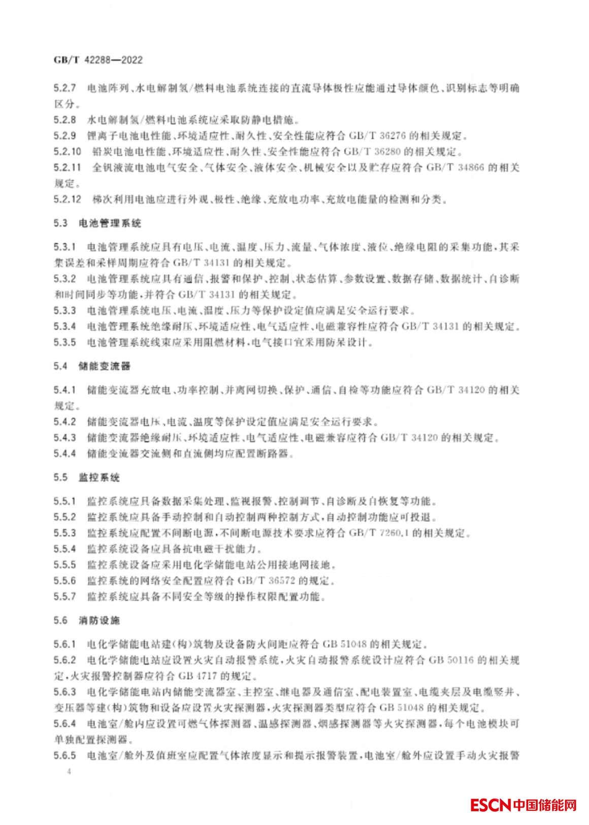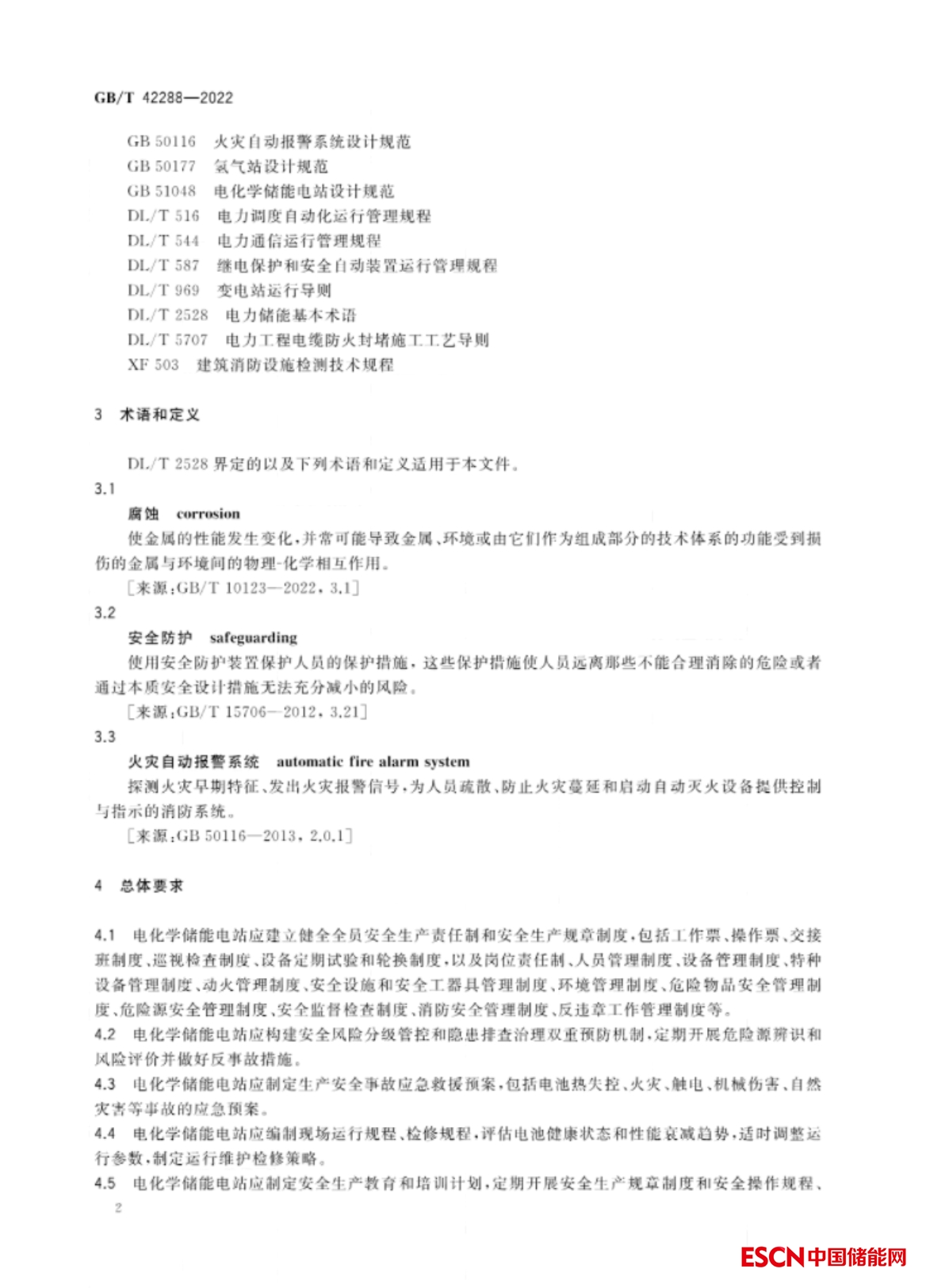 中國儲能網(wǎng)訊:近日,全國標(biāo)準(zhǔn)信息公共服務(wù)平臺發(fā)布了國家標(biāo)準(zhǔn)《電化學(xué)儲能電站安全規(guī)程》全文,該標(biāo)準(zhǔn)將于2023年7月1日正式實施 。該項國家標(biāo)準(zhǔn)針對電化學(xué)儲能電站的設(shè)備設(shè)施、運行維護(hù)、檢修試驗、應(yīng)急處置等提出明確的安全要求,適用于鋰離子電池、鉛酸(炭)電池、液流電池、水電解制氫/燃料電池電化學(xué)儲能電站,其他類型的電化學(xué)儲能電站可參照使用。