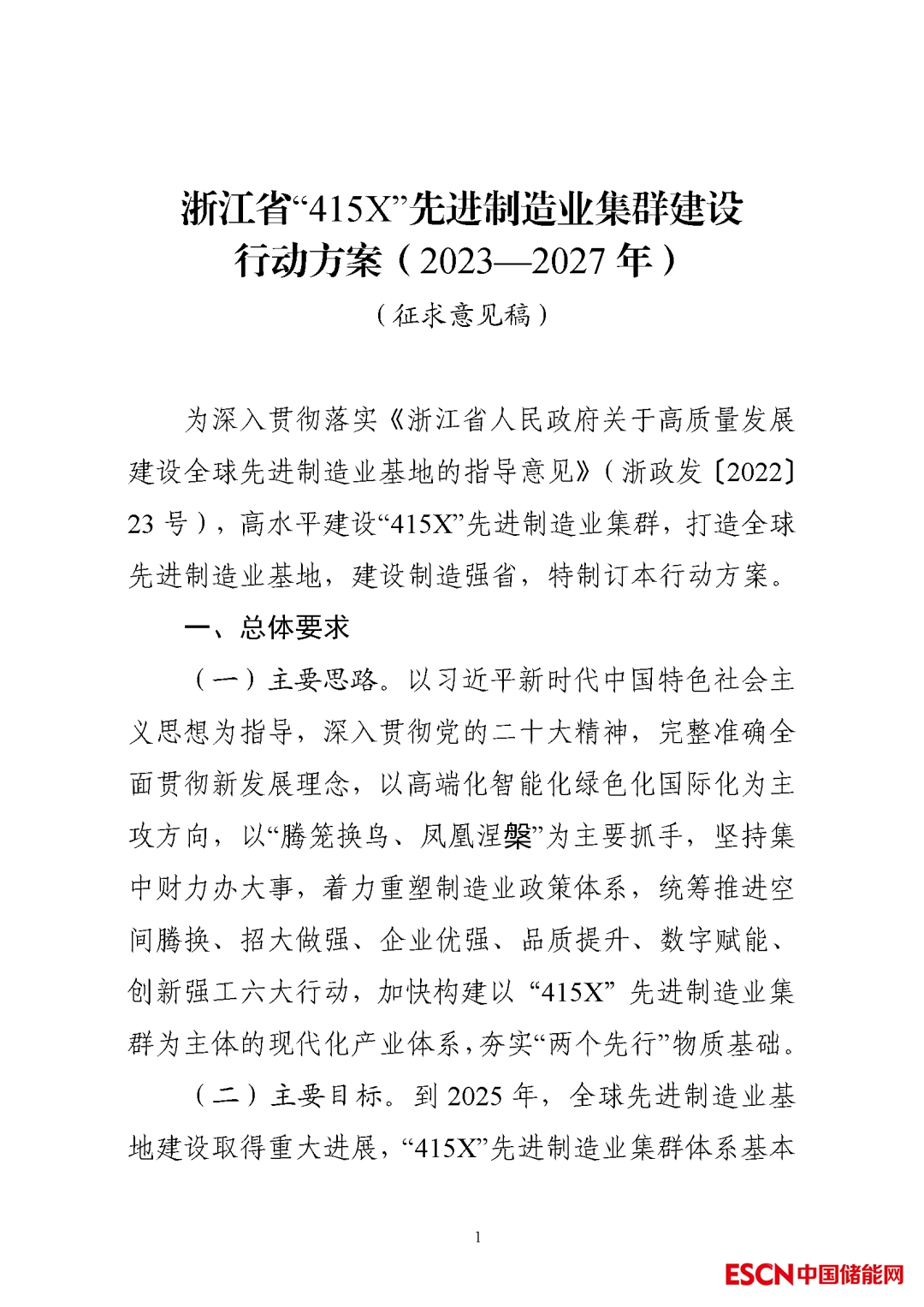 中國儲能網訊:日前,浙江省經濟和信息化廳發(fā)布了“關于公開征求《浙江省“415X”先進制造業(yè)集群建設行動方案(2023-2027年)(征求意見稿)》意見建議的公告”,公告指出: