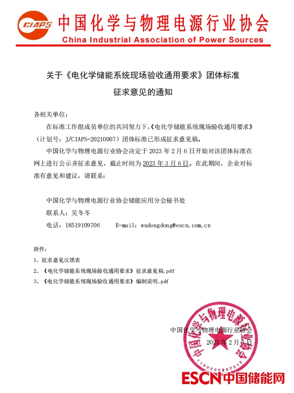 在標(biāo)準(zhǔn)工作組成員單位的共同努力下,《電化學(xué)儲能系統(tǒng)現(xiàn)場驗收通用要求》(計劃號:J/CIAPS-20210007)團(tuán)體標(biāo)準(zhǔn)已形成征求意見稿。