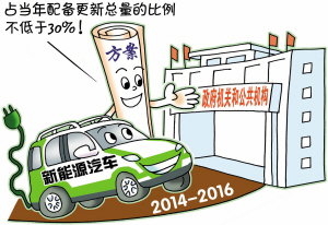 記者看到,《方案》明確提出了新能源公務用車購買的“時間表”?!?014年至2016年,中央國家機關以及新能源汽車推廣應用城市的政府機關及公共機構(指全部或部分使用財政資金的國家機關、事業(yè)單位和團體組織),購買的新能源汽車占當年配備更新總量的比例不低于30%,以后逐年提高?!?