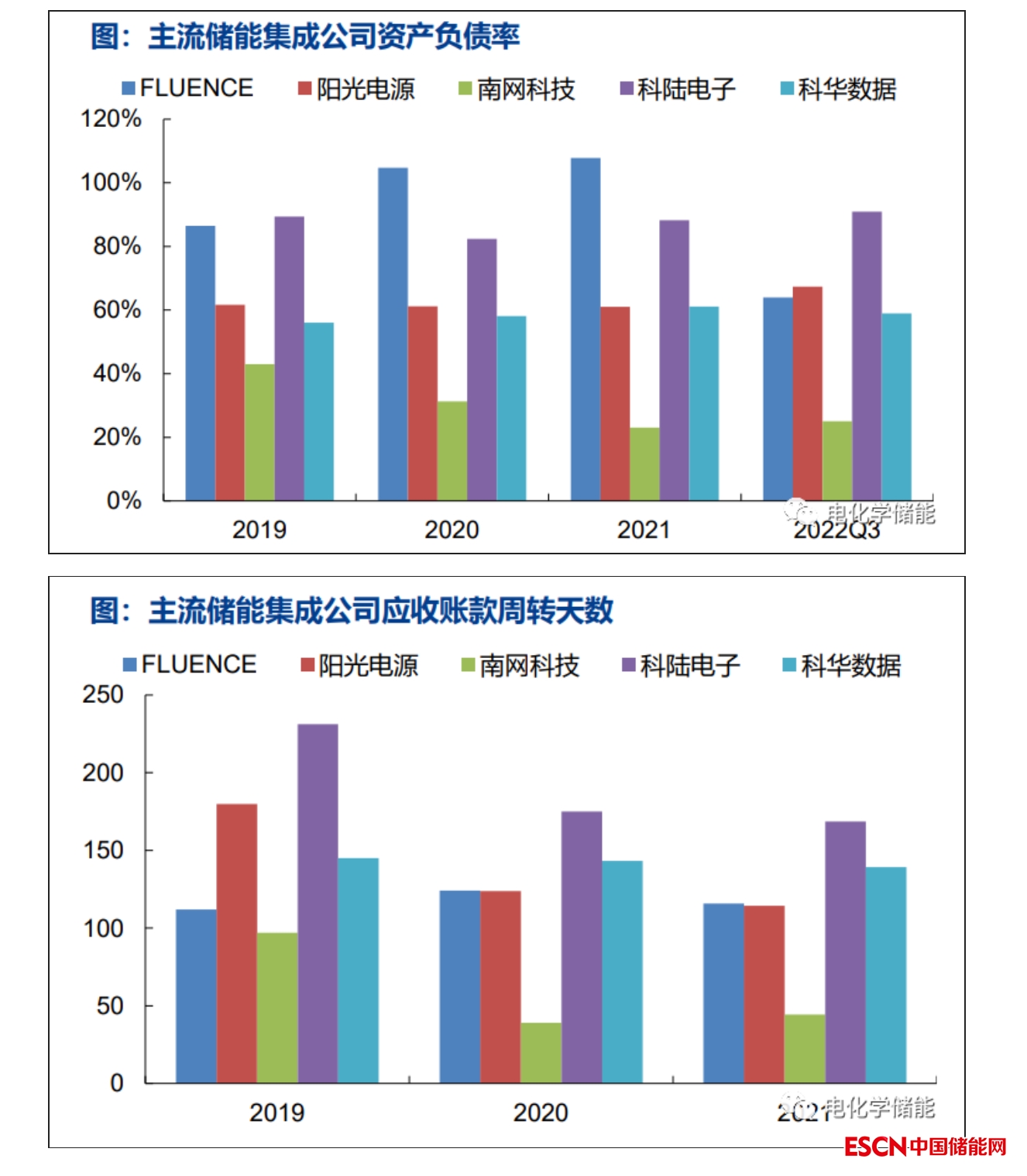 大儲(chǔ)建設(shè)周期長,資金占用比例較高,對(duì)資金實(shí)力要求高。主流儲(chǔ)能集成企業(yè)的資產(chǎn)負(fù)債率和應(yīng)收賬款周轉(zhuǎn)天數(shù)較高,反映其對(duì)行業(yè)為重資產(chǎn)行業(yè)且資金占用比例較高。目前單體儲(chǔ)能項(xiàng)目的規(guī)模通常超過100MW,對(duì)應(yīng)項(xiàng)目總投資超過億元。
