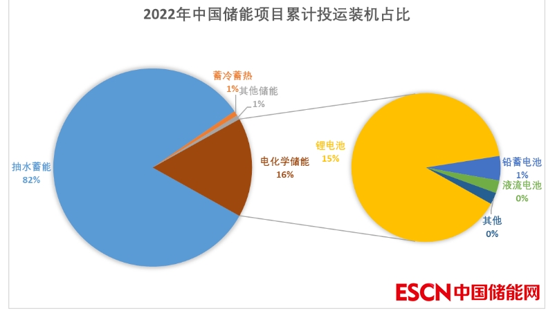 圖2 2022年我國(guó)儲(chǔ)能項(xiàng)目累計(jì)投運(yùn)裝機(jī)占比