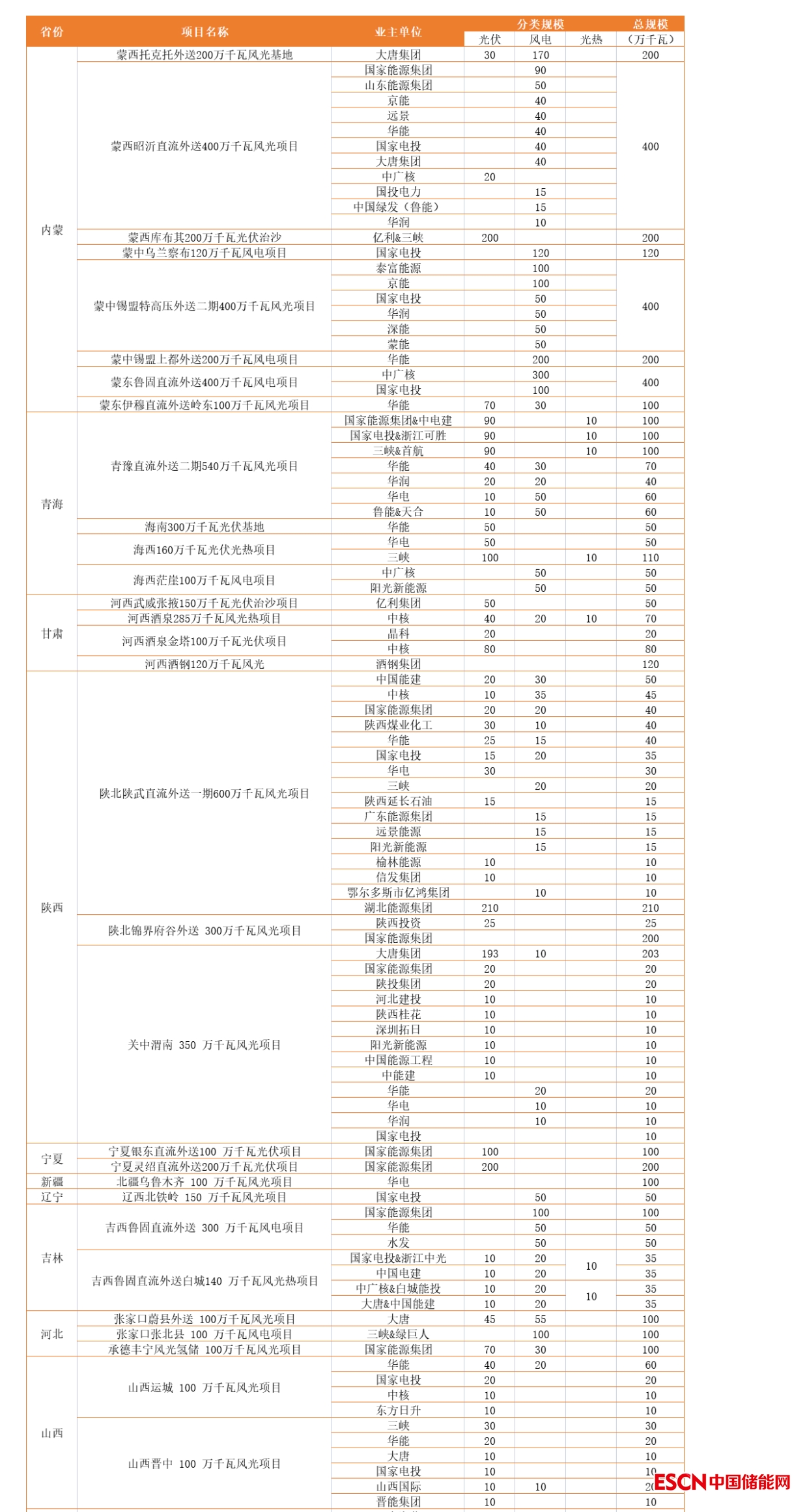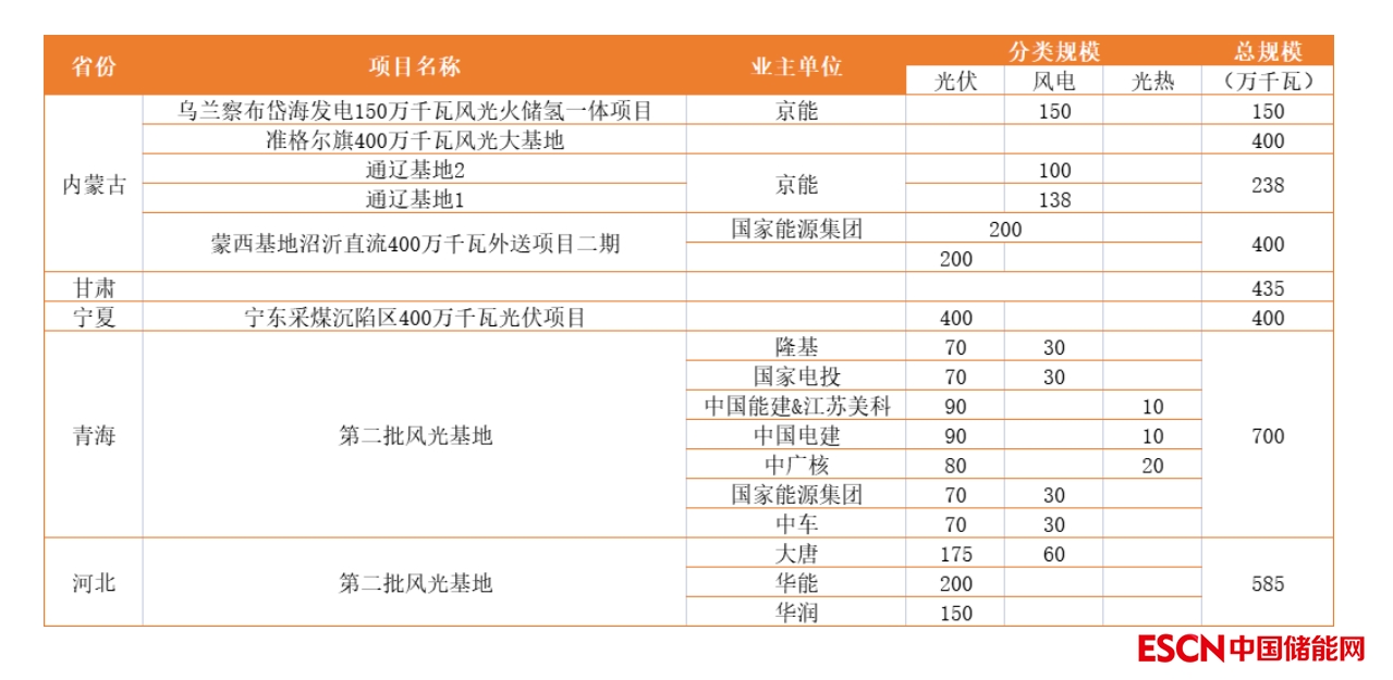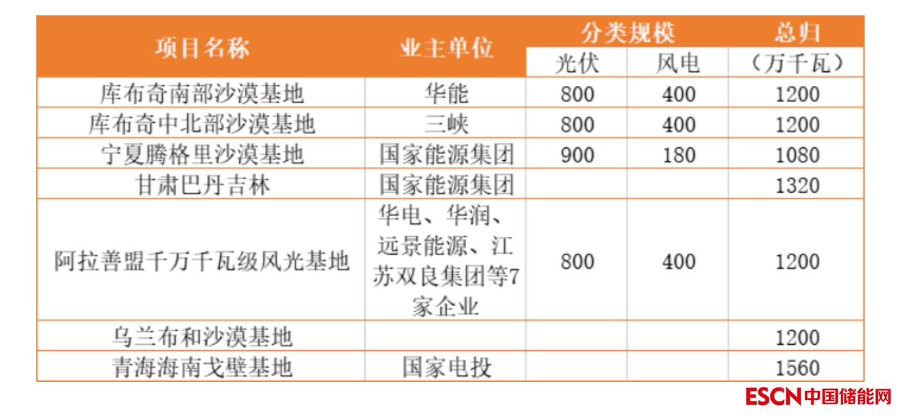 國(guó)家級(jí)大基地規(guī)劃及業(yè)主名單