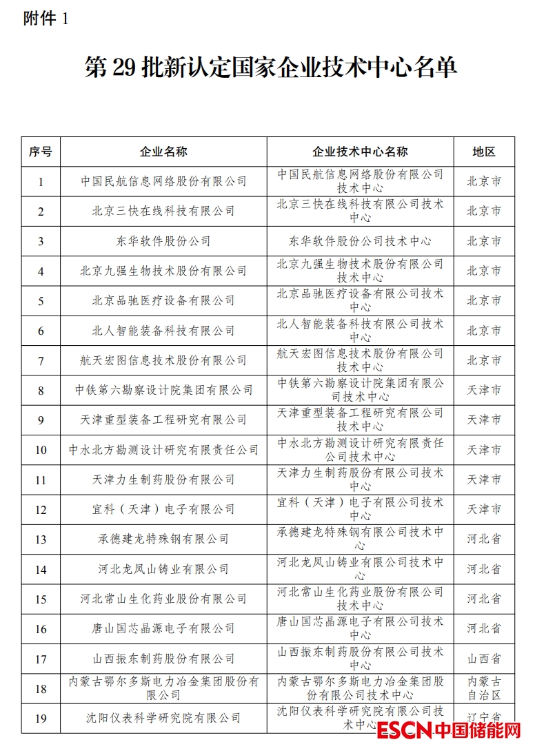國家發(fā)展改革委等部門關(guān)于印發(fā)第29批新認定及全部國家企業(yè)技術(shù)中心名單的通知