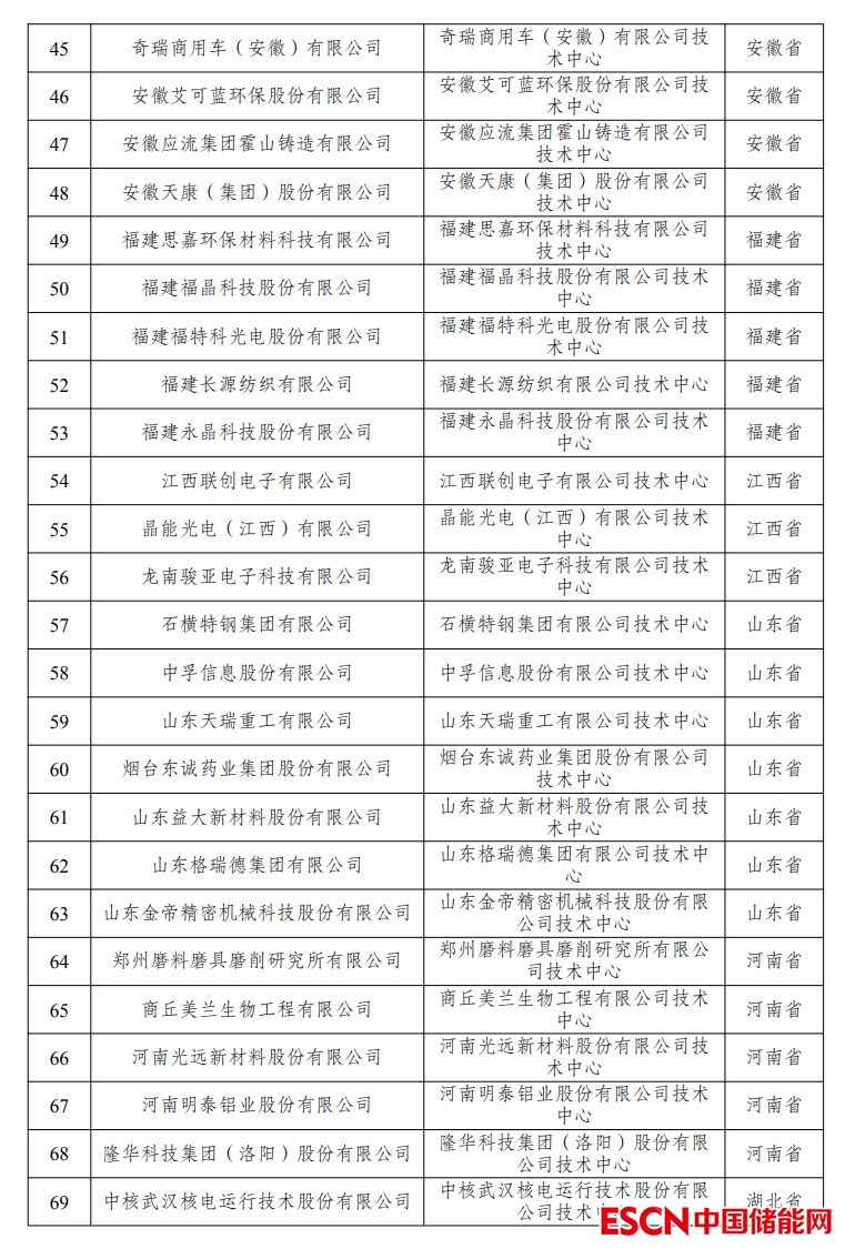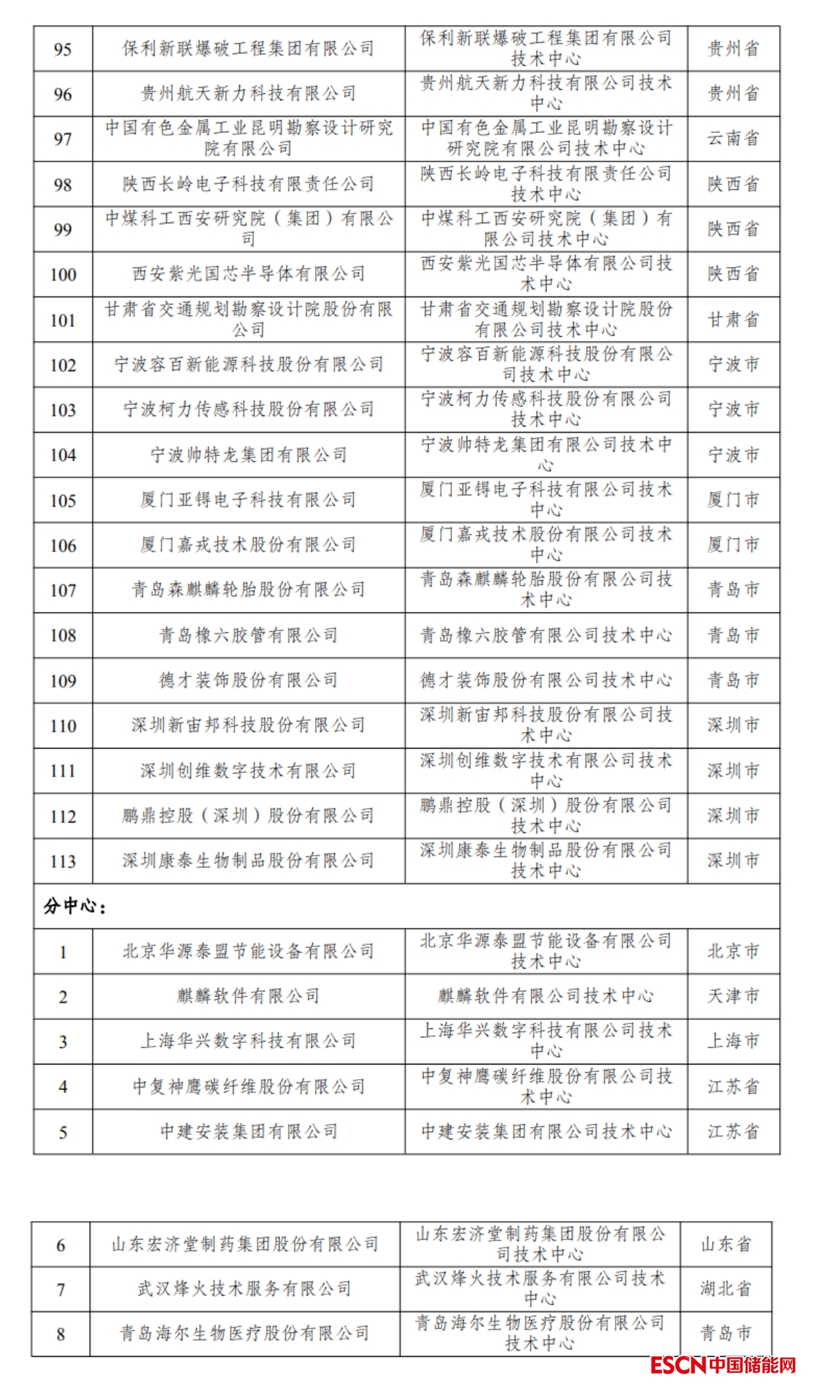 中國儲能網(wǎng)訊:近日,國家發(fā)改委發(fā)布了第29批新認定及全部國家企業(yè)技術(shù)中心名單。上海恩捷、先導智能、華友鈷業(yè)、明泰鋁業(yè)、湖北萬潤、長遠鋰科、容百科技、新宙邦等多家儲能產(chǎn)業(yè)鏈企業(yè)入選。