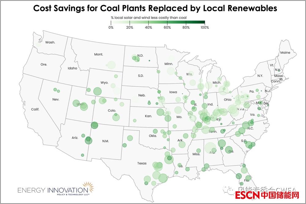 英國《衛(wèi)報(bào)》對(duì)此進(jìn)行了報(bào)道,它強(qiáng)調(diào)了能源創(chuàng)新所做的這項(xiàng)最新研究發(fā)現(xiàn),美國的煤電毫無疑問在經(jīng)濟(jì)上已經(jīng)被可再生能源全面超越:99%的燃煤發(fā)電廠運(yùn)行成本比在附近新建一座全新的太陽能或風(fēng)能發(fā)電廠要昂貴得多。