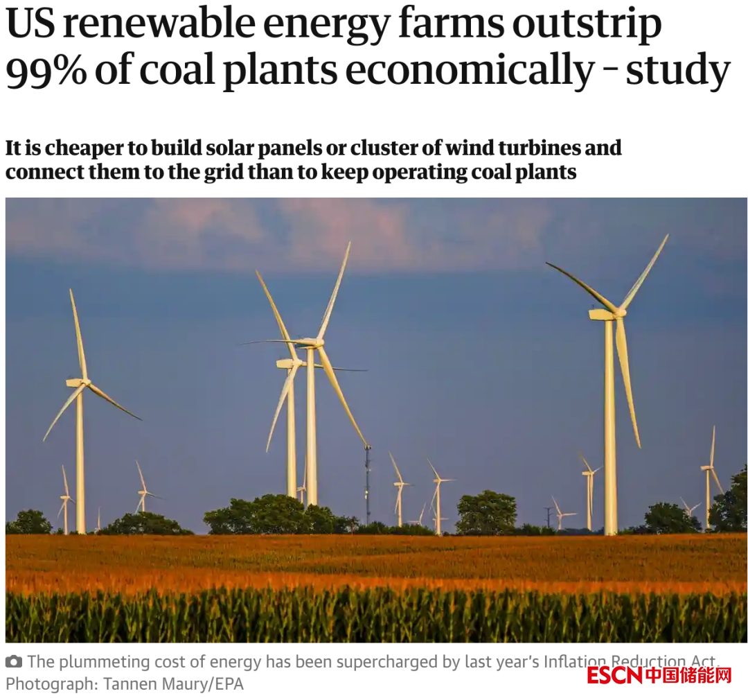 研究顯示,美國《通脹削減法案》(Inflation Reduction Act)將使可再生能源發(fā)電成本大幅下降,這意味著建造新的太陽能光伏或風(fēng)力發(fā)電廠,要比繼續(xù)運(yùn)營美國剩下的210家中的209家燃煤發(fā)電廠更為便宜。