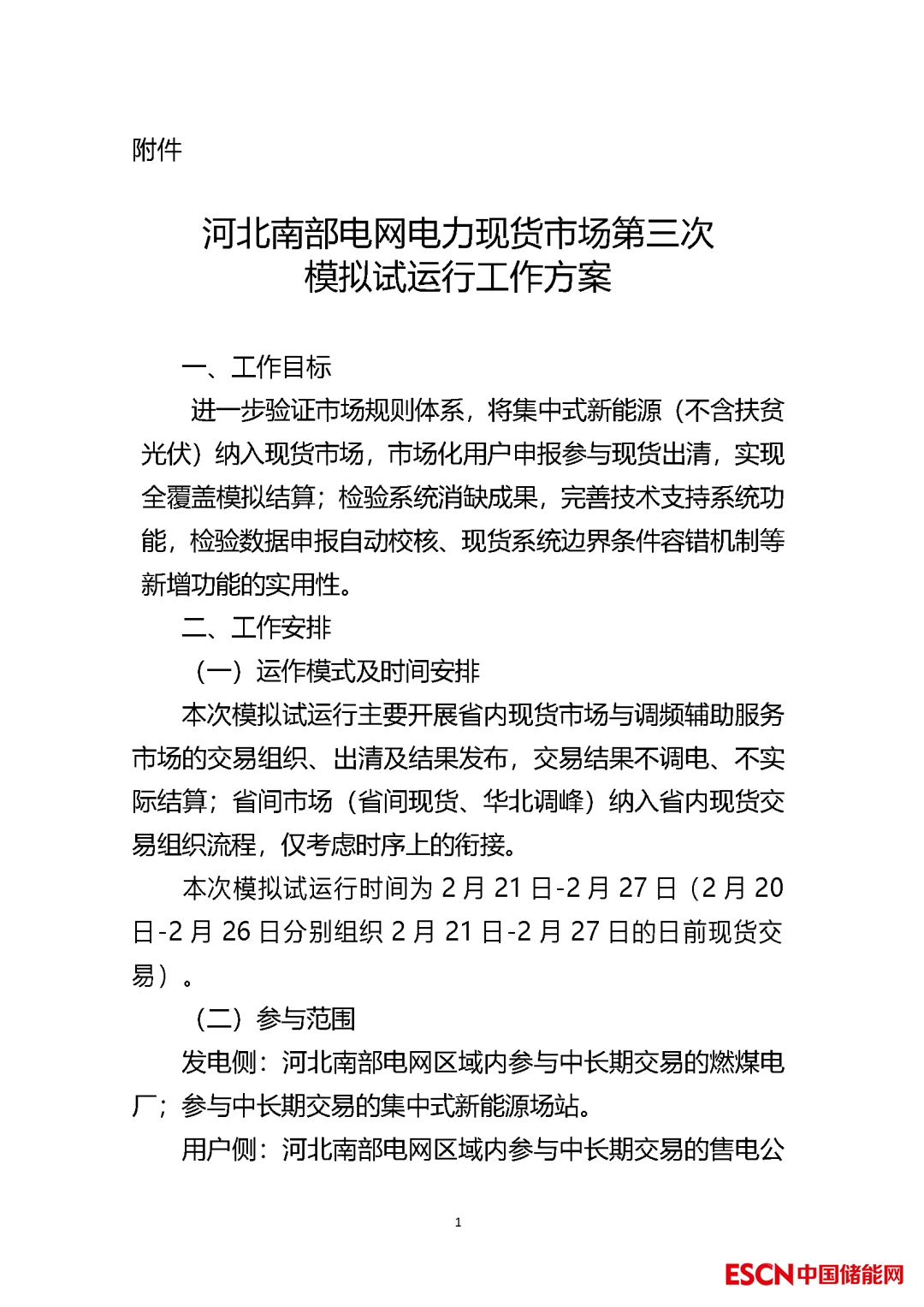 《河北南部電網(wǎng)電力現(xiàn)貨市場第三次模擬試運(yùn)行工作方案》原文如下:
