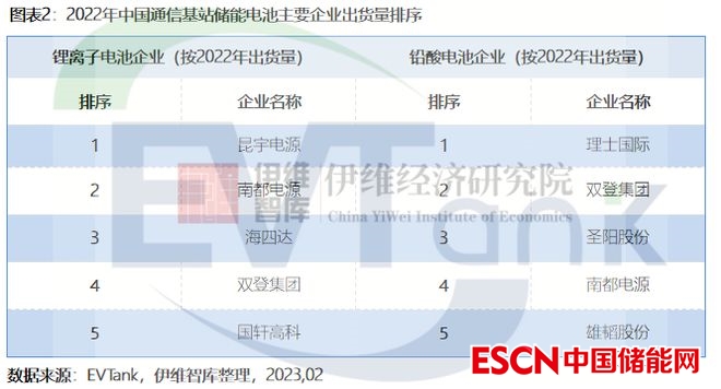 從通信基站儲(chǔ)能用鉛酸電池來(lái)看,目前的主要參與者包括理士國(guó)際,南都電源、雄韜股份、雙登集團(tuán)、圣陽(yáng)股份等,在通信基站儲(chǔ)能用鋰離子電池領(lǐng)域,除了之前的鉛酸電池企業(yè)轉(zhuǎn)型提供基站用鋰離子電池產(chǎn)品之外,包括昆宇電源、海四達(dá)、國(guó)軒高科、寧德時(shí)代、比亞迪、億緯鋰能和ATL等專(zhuān)注于鋰離子電池企業(yè)也在積極開(kāi)拓通信基站儲(chǔ)能領(lǐng)域。EVTank數(shù)據(jù)顯示,2022年理士國(guó)際和昆宇電源分別在通信基站儲(chǔ)能用鉛酸電池和鋰離子電池領(lǐng)域排名第一。