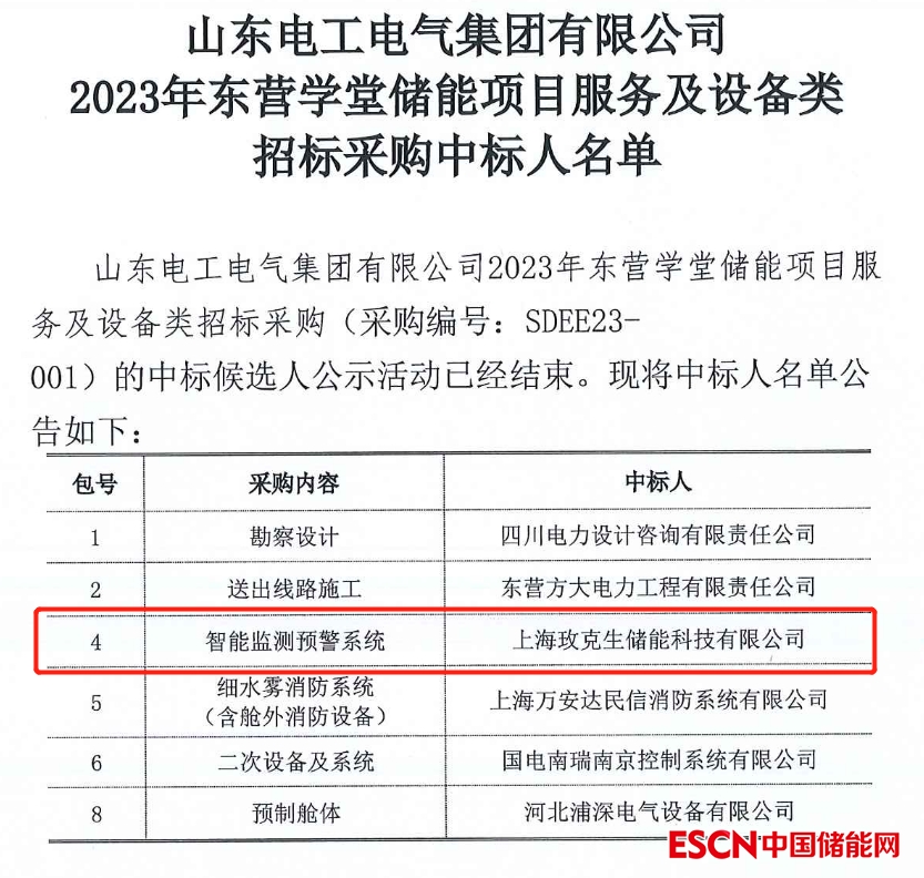 中國儲能網(wǎng)訊:新春起跑,實干開局!近日,山東電工電氣集團(tuán)有限公司2023年東營學(xué)堂儲能項目服務(wù)及設(shè)備類招標(biāo)采購中標(biāo)人名單公示,美克生能源“智能監(jiān)測預(yù)警系統(tǒng)”成功中標(biāo),詳情如下: