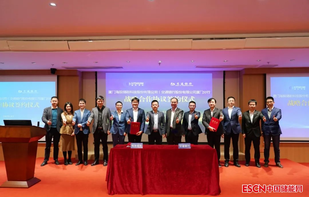 海辰儲(chǔ)能聯(lián)合創(chuàng)始人、總經(jīng)理王鵬程與廈門交行黨委書記、行長(zhǎng)謝?海共同見證,海辰儲(chǔ)能董事、副總經(jīng)理龐文杰、廈門交行黨委委員葉?昉代表雙方簽約。