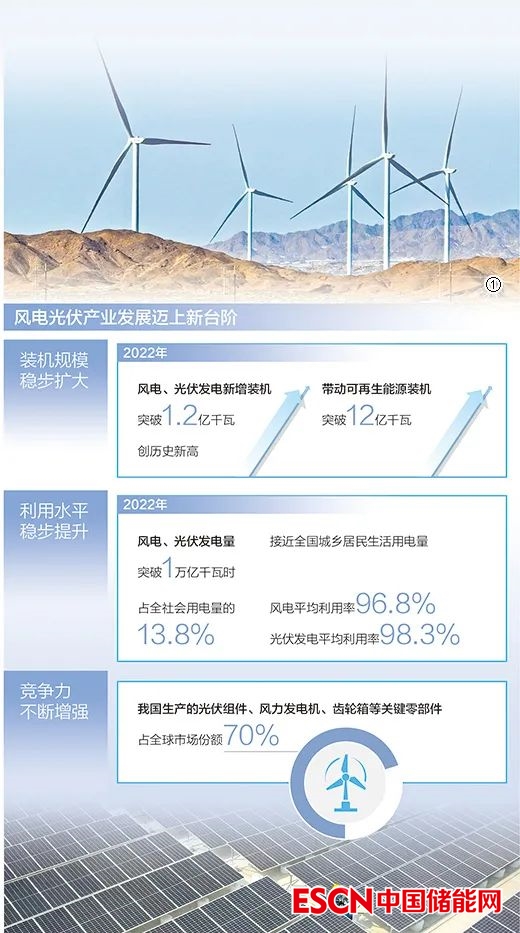 中國儲(chǔ)能網(wǎng)訊:出口總額超過512億美元,同比增長80.3%——2022年,我國光伏產(chǎn)業(yè)在國際市場的表現(xiàn)亮眼。歷經(jīng)多年深耕細(xì)作,我國風(fēng)電光伏產(chǎn)業(yè)競爭力大幅提升,光伏組件、風(fēng)力發(fā)電機(jī)、齒輪箱等關(guān)鍵零部件占全球市場份額的比重提升至70%。在國內(nèi),風(fēng)電光伏也已成為新增發(fā)電裝機(jī)和新增發(fā)電量的主體,2022年占比分別達(dá)到78%和55%以上,累計(jì)裝機(jī)突破7億千瓦,相當(dāng)于30多個(gè)三峽電站。