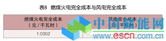綜合以上分析,燃煤火電完全成本與風(fēng)電完全成本如表8所示。