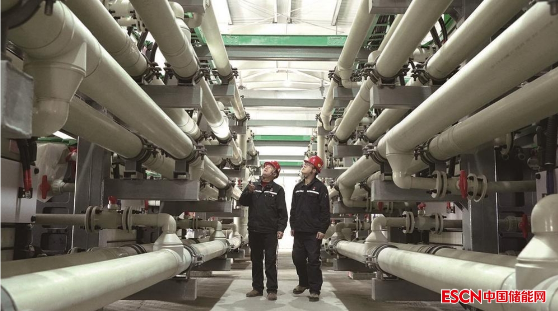 2023年2月28日,全球最大容量、我國首個兆瓦級鐵-鉻液流電池儲能示范項目在內蒙古成功試運行,即將投入商用。該項目由國家電投內蒙古公司投資建設,共安裝了34臺我國自主研發(fā)的“容和一號”電池堆和四組儲罐組成的儲能系統(tǒng),利用電解液中的鐵離子和鉻離子的化學特性把電能儲存起來,可以將6000度電儲存6小時。