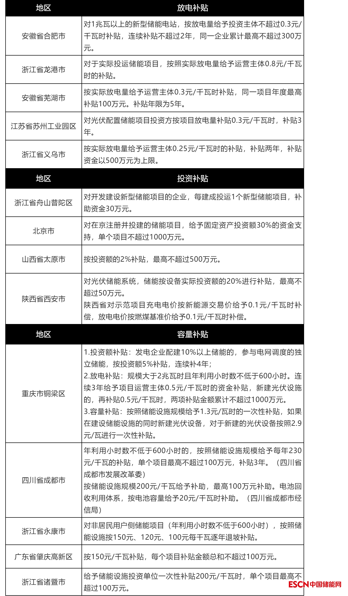 表 用戶側(cè)儲(chǔ)能補(bǔ)貼政策