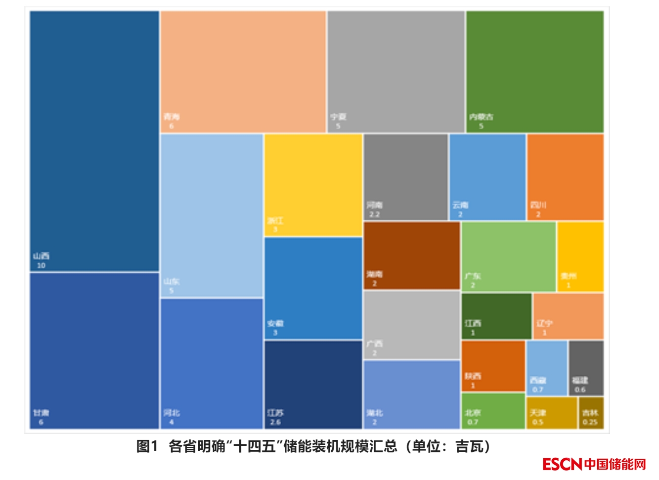圖1 各省明確“十四五”儲(chǔ)能裝機(jī)規(guī)模匯總(單位:吉瓦)