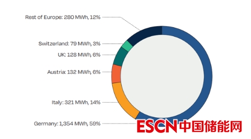 另外,當(dāng)?shù)丶矣秒姵匕惭b規(guī)模2020年為3GWh左右,2021年超過5GWh,今年已突破9GWh。2021年歐洲家用電池儲能市場增長了一倍多,達(dá)到2.3GWh,其中德國市場份額最大,占比達(dá)59%,新增儲能容量1.3GWh,年增長率為81%,意大利在2021年新增裝機321MWh,年增長率240%。