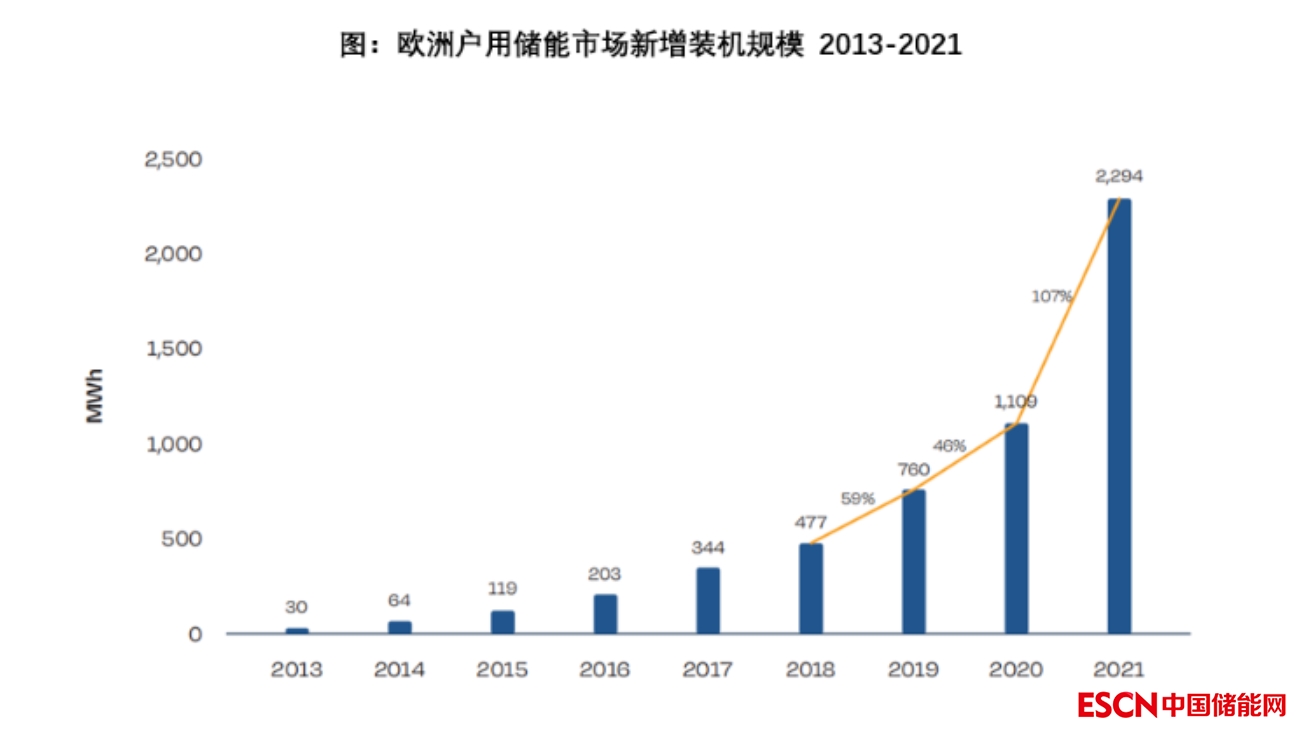 歐洲2022年家用電池儲能系統(tǒng)安裝數(shù)量已超過百萬組,電池規(guī)模超過9GWh