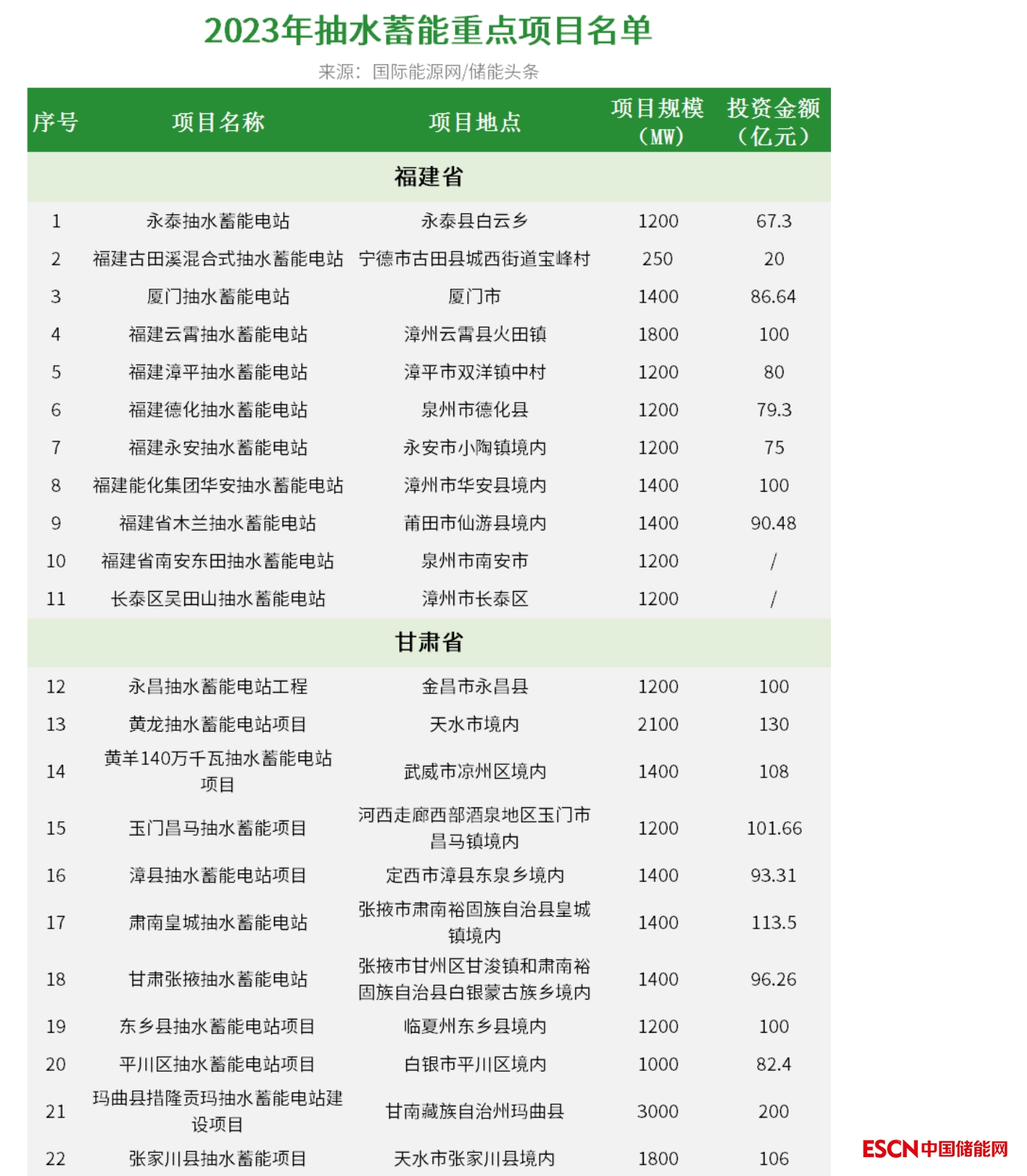 據(jù)據(jù)國(guó)際能源網(wǎng)/儲(chǔ)能頭條(微信號(hào):chuneng365)統(tǒng)計(jì),截至目前,2023年甘肅、河北、河南、福建、四川、貴州、安徽、浙江、新疆等省份共公布重點(diǎn)抽水蓄能項(xiàng)目累計(jì)達(dá)80個(gè),規(guī)??傆?jì)達(dá)115.7GW,項(xiàng)目總投資6144.15億元。
