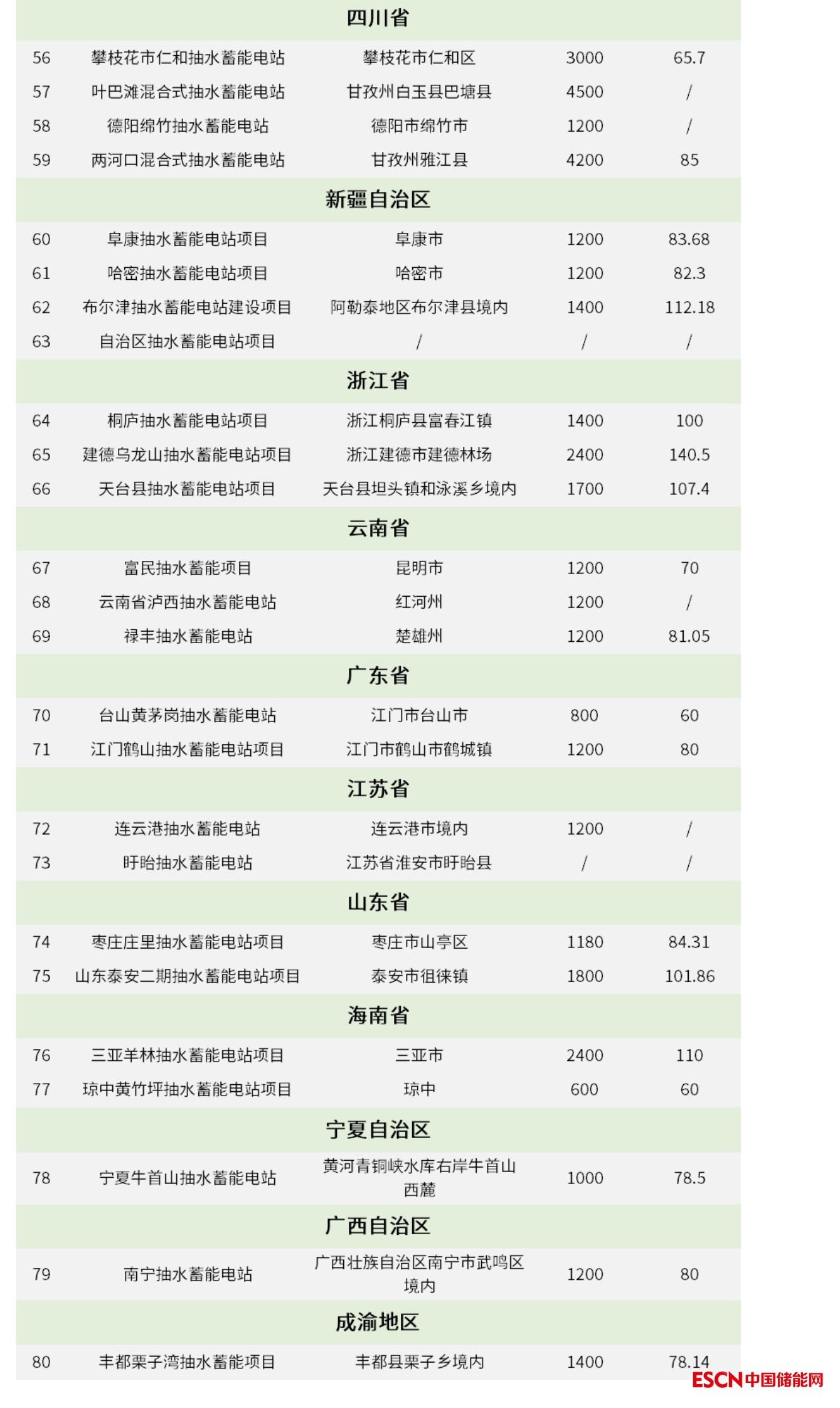抽水蓄能類項(xiàng)目也是安徽省儲(chǔ)能建設(shè)的一個(gè)重要領(lǐng)域,抽水蓄能類項(xiàng)目共有5個(gè),包括霍山縣抽水蓄能電站、安徽金寨抽水蓄能電站、安徽寧國(guó)抽水蓄能電站、桐城抽水蓄能電站。