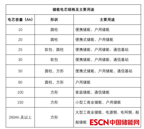 150Ah、200Ah、280Ah、280Ah以上型號(hào)等主要是大容量方形電芯,用于大型儲(chǔ)能,包括大型工商業(yè)儲(chǔ)能、新能源電站、電網(wǎng)等場(chǎng)景。