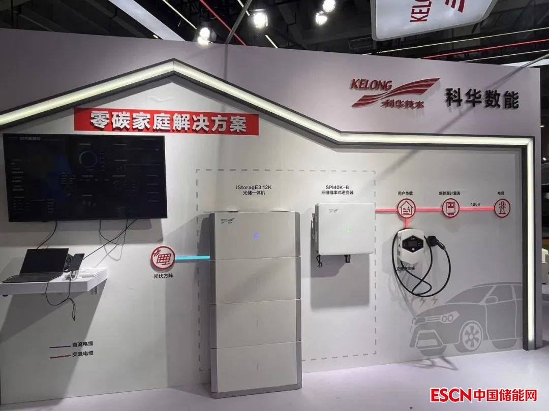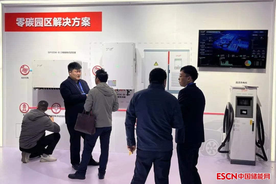 在零碳園區(qū)解決方案展示區(qū),科華數(shù)能帶來了先進(jìn)的工商業(yè)光儲充一體化產(chǎn)品方案,包括SPI系列三相組串式逆變器、BCS系列壁掛式儲能變流器和立柜式儲能一體化電源、iStoragE系列光儲一體機(jī)、直流快充充電樁及EMS能量管理平臺等。相比去年,產(chǎn)品陣容更加強(qiáng)大,系統(tǒng)更智能、功能更全面。
