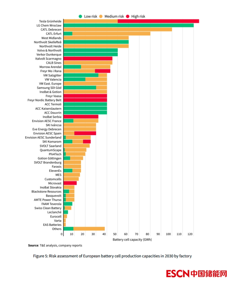到2030年歐洲各家電池生產(chǎn)工廠生產(chǎn)能力風(fēng)險評估