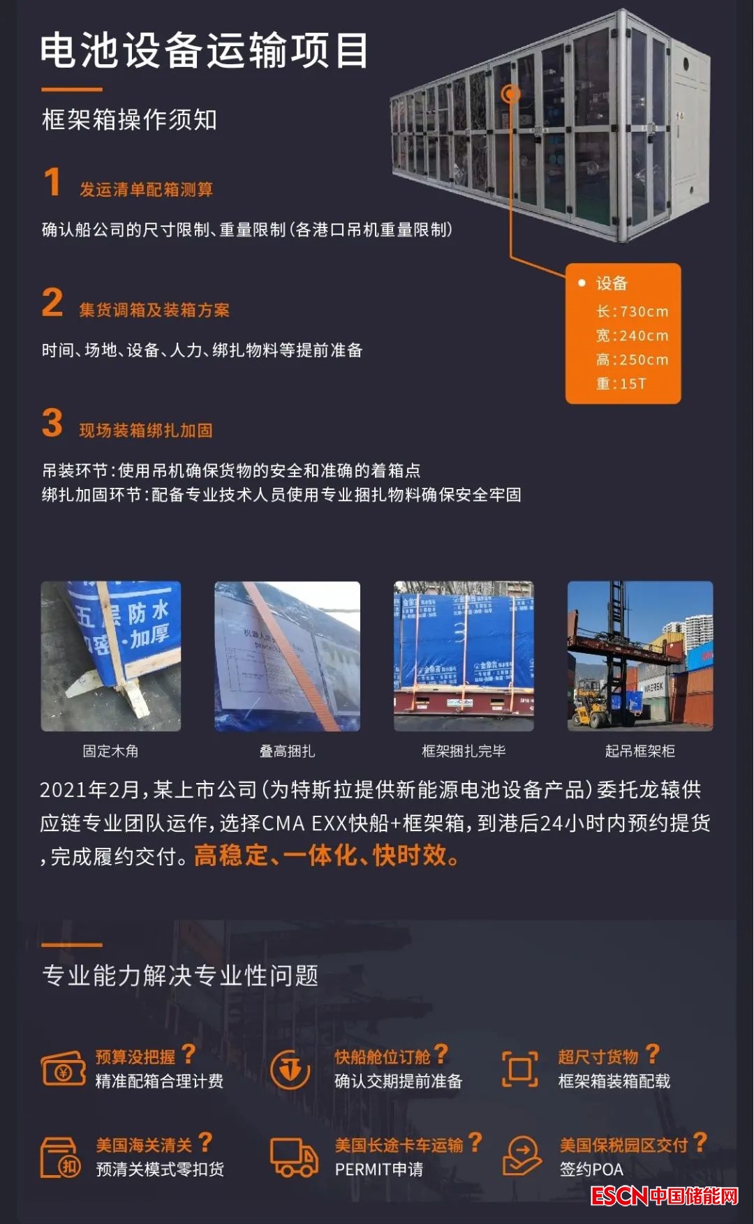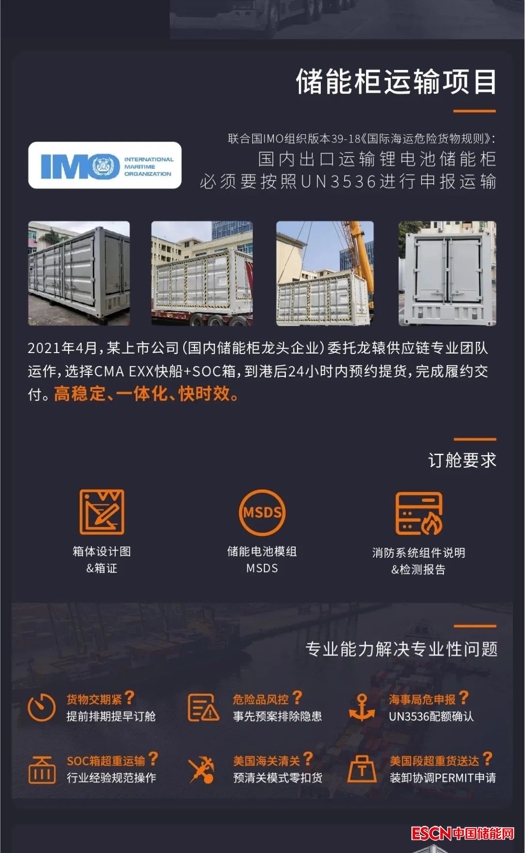 2021年是中國儲能出海爆發(fā)式增長的元年,龍轅供應(yīng)鏈在2021年5月交付了美國東北電網(wǎng)的儲能項目【戳鏈接:超尺寸貨物運用框架箱運輸,龍轅再現(xiàn)——硅谷鋼鐵俠埃隆馬斯克背后的搬運工】,成為物流解決方案“集成一體化”供應(yīng)商,依托美國自營海外操作團隊+自營海外倉+自營車隊的一體化服務(wù)優(yōu)勢,陪伴中國儲能集成商一起成長,從2021年的運力短缺到2022年原料上漲導致的供應(yīng)鏈供貨延遲等,我們與中國制造一起共克時艱,每個項目的履約交付都讓我們累積了儲能系統(tǒng)物流項目管理的經(jīng)驗,也讓我們看到了中國儲能技術(shù)不斷迭代下的海外市場機會。
