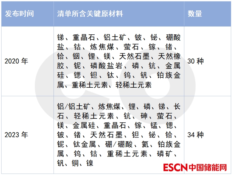 注:2011年,歐盟首次發(fā)布關(guān)鍵原材料清單,目前已修訂至第五版。歐盟委員會(huì)承諾每3年修訂一次。