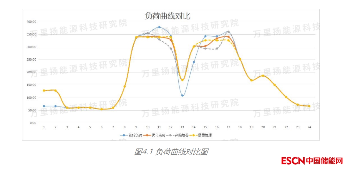 1. 當(dāng)儲能系統(tǒng)采用不考慮需量電費(fèi)管理,單純進(jìn)行削峰填谷的運(yùn)行模式時,運(yùn)行得出需量值為361千瓦,該模式下調(diào)整成本為78834.21元。