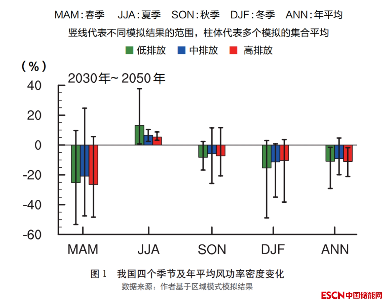 基于當(dāng)前技術(shù)水平對(duì)氣候變化背景下我國(guó)風(fēng)能和太陽(yáng)能資源的預(yù)估結(jié)果表明, 2030年~ 2050 年我國(guó)總體的風(fēng)能和太陽(yáng)能資源趨于減少,年平均風(fēng)功率密度和光伏發(fā)電量的變化百分率分別在 12%~ 9% 和 1.1%~ 1.3%之間,但考慮到風(fēng)功率密度和光伏發(fā)電量的年際變率較大(均在 ±10% 以上),其結(jié)果可能不會(huì)對(duì)我國(guó)未來(lái)的風(fēng)能和太陽(yáng)能資源規(guī)劃產(chǎn)生實(shí)質(zhì)性影響。此外,注意到,風(fēng)能資源的季節(jié)性和區(qū)域性差異較太陽(yáng)能資源明顯要大,華南低風(fēng)速區(qū)的增加趨勢(shì)對(duì)于該地區(qū)風(fēng)電技術(shù)開(kāi)發(fā)利用具有有利影響。